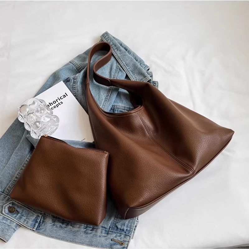 대용량 가방 여성 가방 2024 새로운 하이 엔드 소프트 가죽 언더 암 숄더 백 엄마와 어머니 작업 통근 토트 백스토어 가기