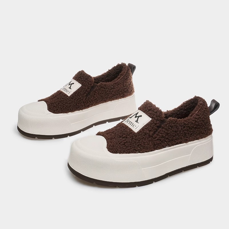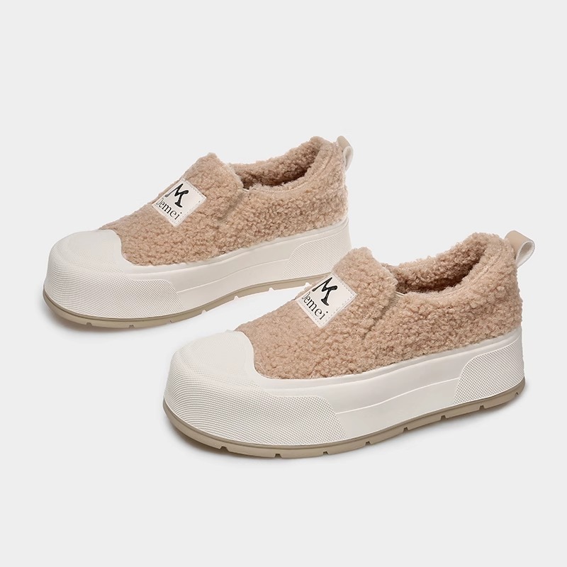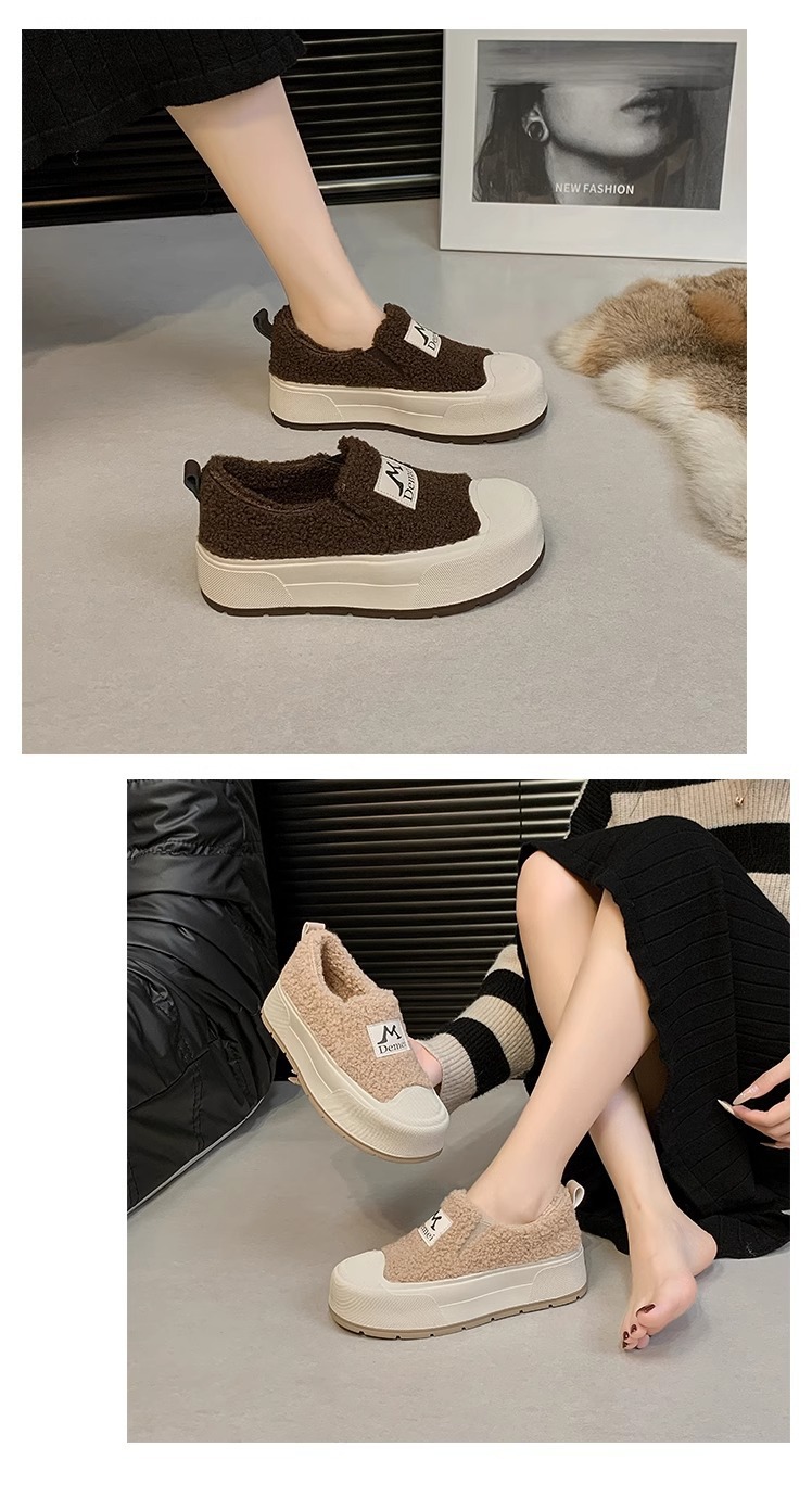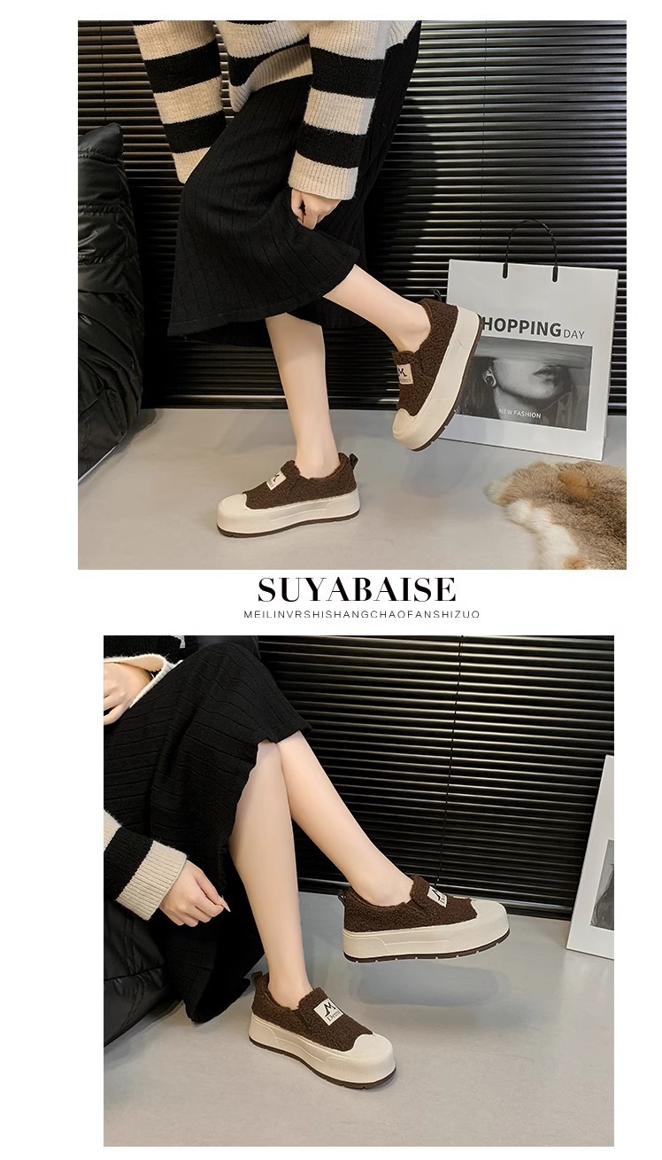 기모 따뜻한 사이버 기념 높이 증가 두꺼운 바닥 빵 흰색 신발 여성의 2024 가을 및 겨울 새로운 패션 캐주얼 코튼 신발스토어 가기