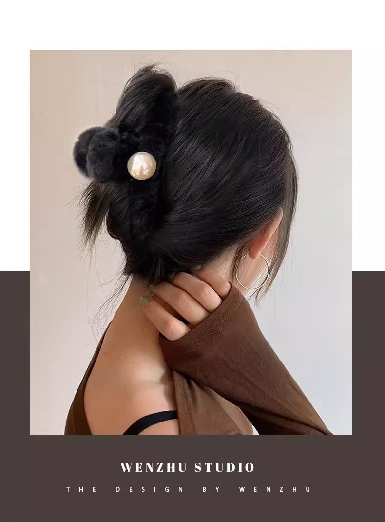 국경 13cm 뒤 머리 상어 클립 봉제 클립 여성 하이 레벨 센스 헤어 클립 머리 장식 진주 헤어 클립 클립스토어 가기