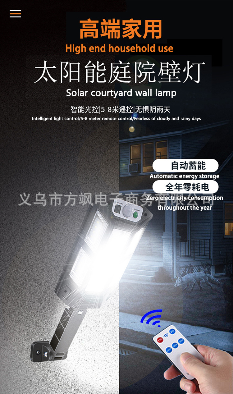 국경 간 태양 광 조명 홈 원격 제어 인체 센서 조명 야외 안뜰 벽 조명 야외 조명 제어 통합 가로등스토어 가기