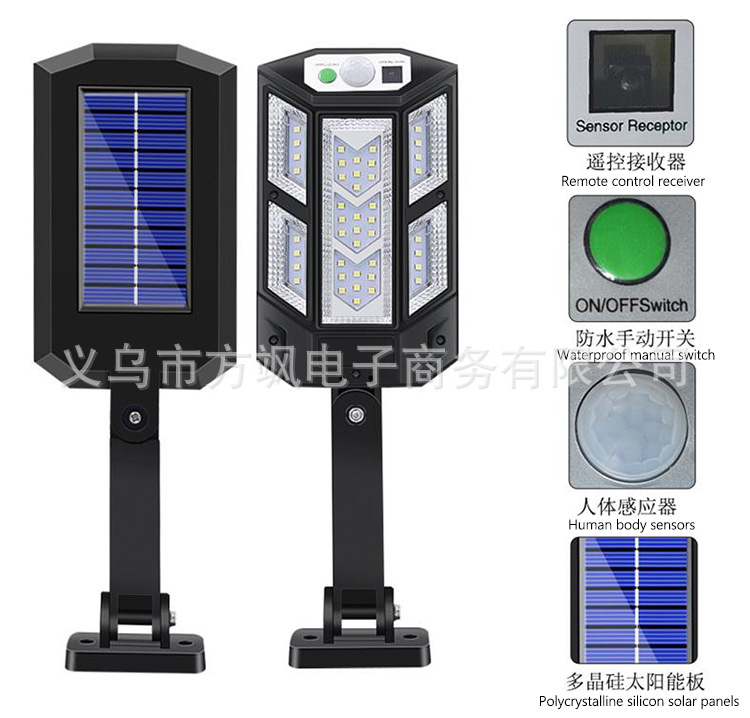 국경 간 태양 광 조명 홈 원격 제어 인체 센서 조명 야외 안뜰 벽 조명 야외 조명 제어 통합 가로등