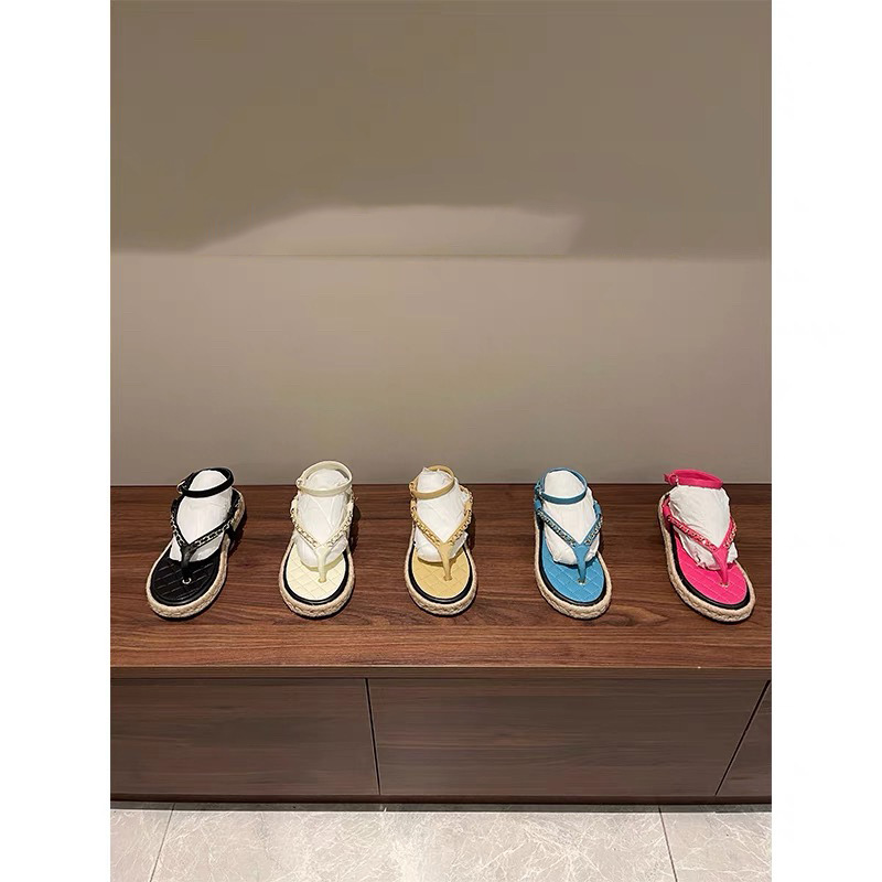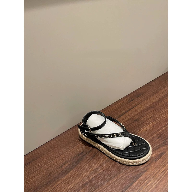 C 가족 샌들 요정 바람 2024 봄과 여름 새로운 한국 스타일 올 매치 플랫 슈즈 비치 체인 토 로마 신발스토어 가기
