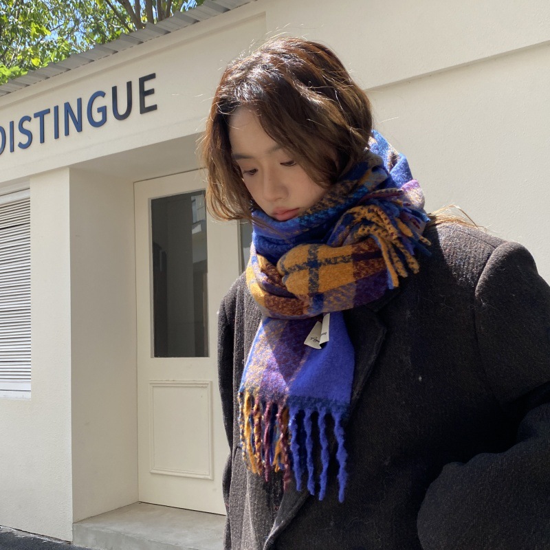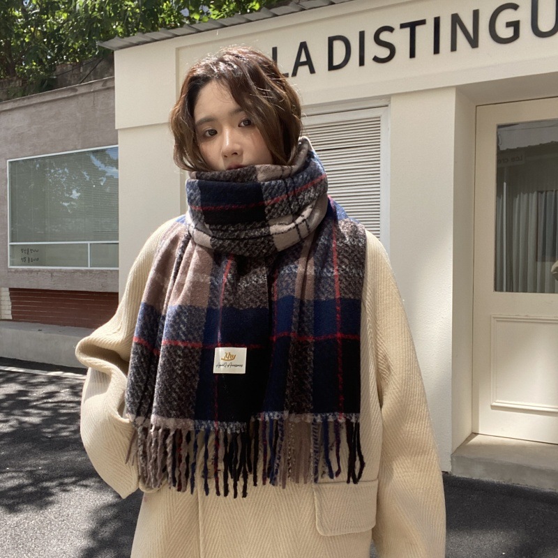 새로운 격자 무늬 황후 Dowager Ankora Red Scarf 여성의 가을과 겨울 하이 엔드 올 매치 따뜻한 목 격자 무늬 목도리스토어 가기