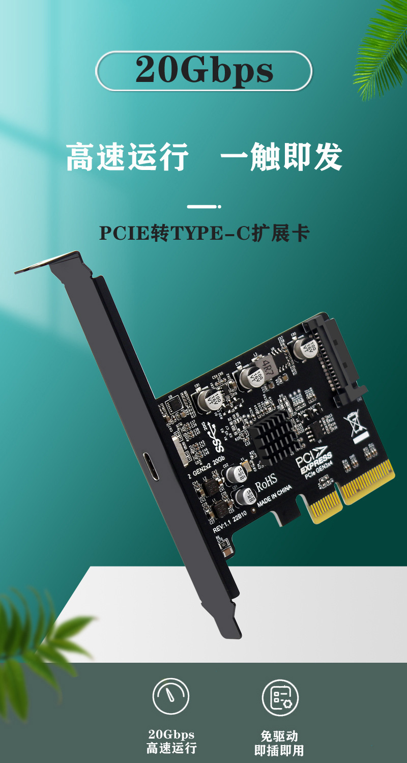 PCIE TYPE-C 확장 카드 20Gbps 고속 전송 독립적 인 전원 공급 장치 드라이버 무료 어댑터 카드 USB3.2스토어 가기
