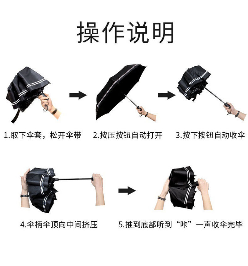 70% off 8본 자동 우산, 귀여운 만화 접이식 비닐 태양 우산, 자외선 차단 및 자외선 차단, 비 또는 빛