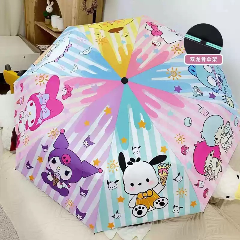 70% off 8본 자동 우산, 귀여운 만화 접이식 비닐 태양 우산, 자외선 차단 및 자외선 차단, 비 또는 빛스토어 가기