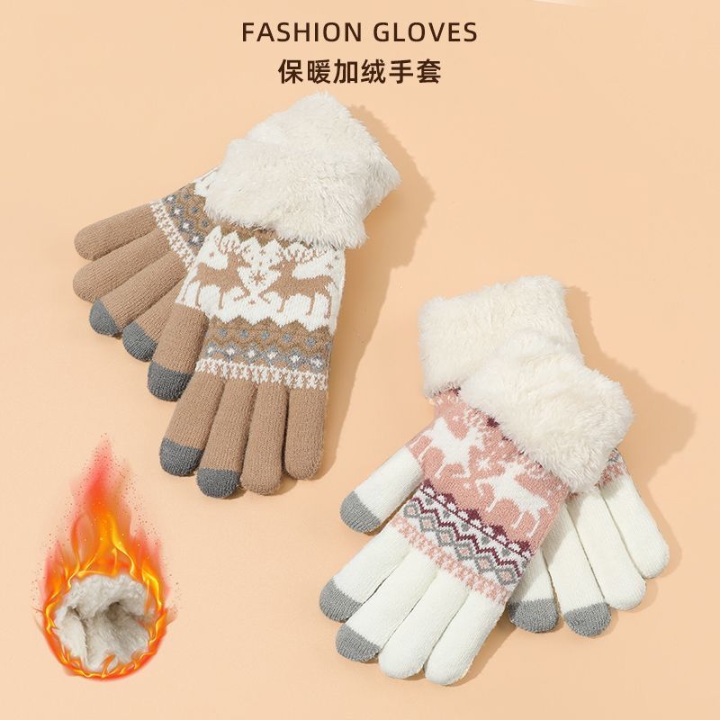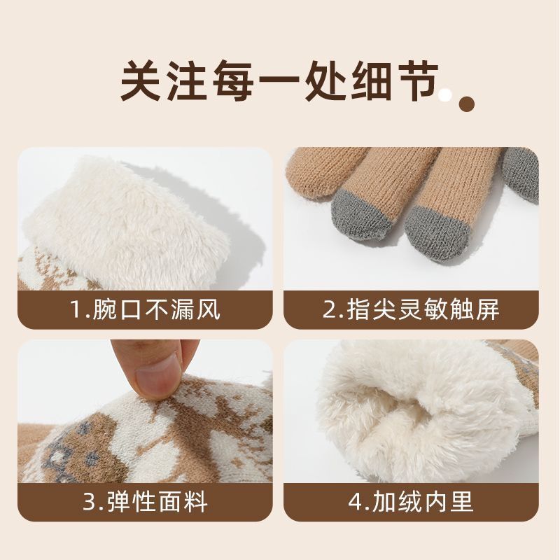 여성용 겨울 장갑, 여학생용, 사이클링용, 귀여운 한국식 벨벳 두꺼운 터치 스크린 방한 겨울 따뜻한 장갑
