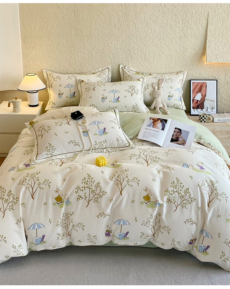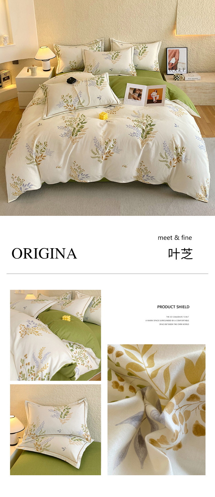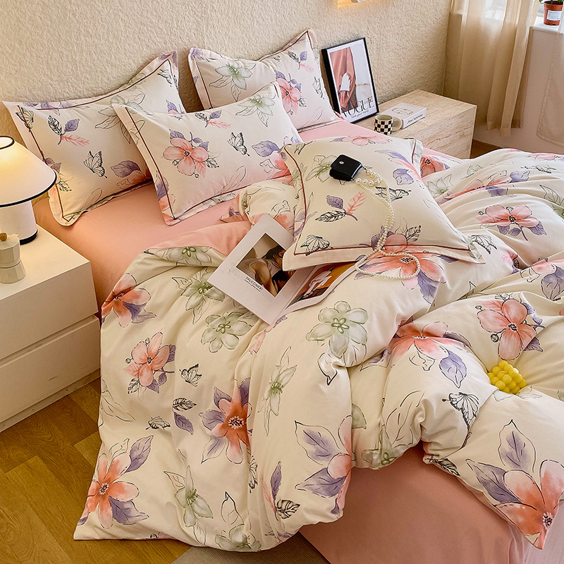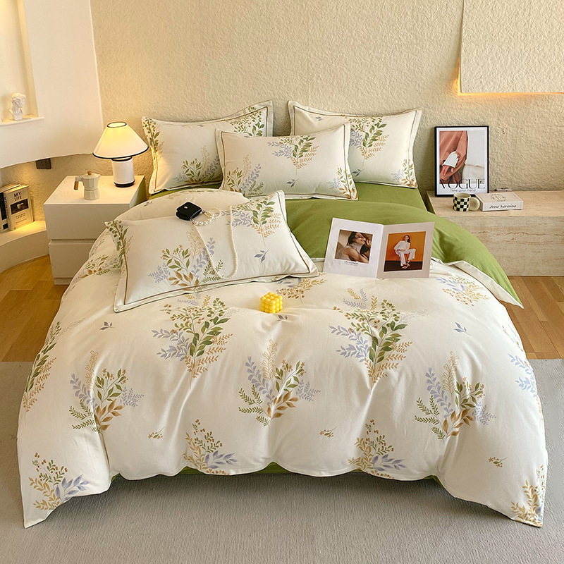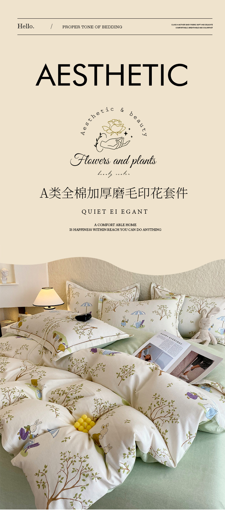 클래스 A 비 형광 신장 면화 침대 4 피스 세트 두꺼운 샌딩 인쇄 단일 이불 커버 시트 3 피스 세트
