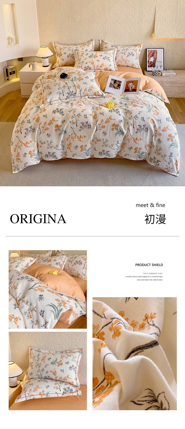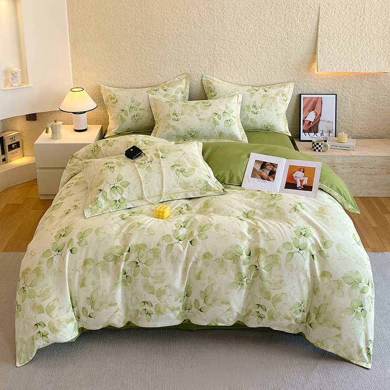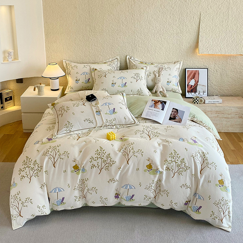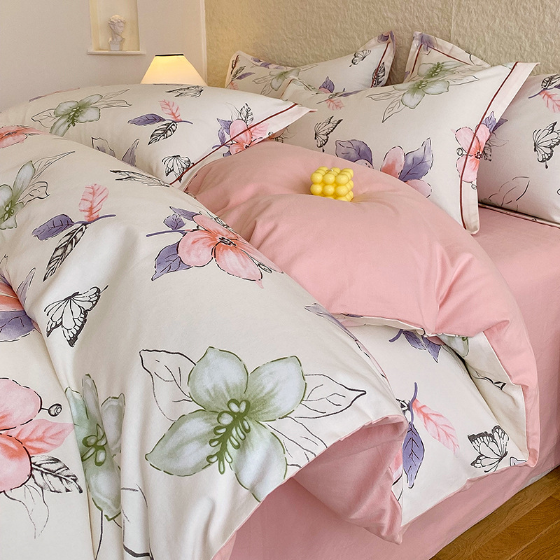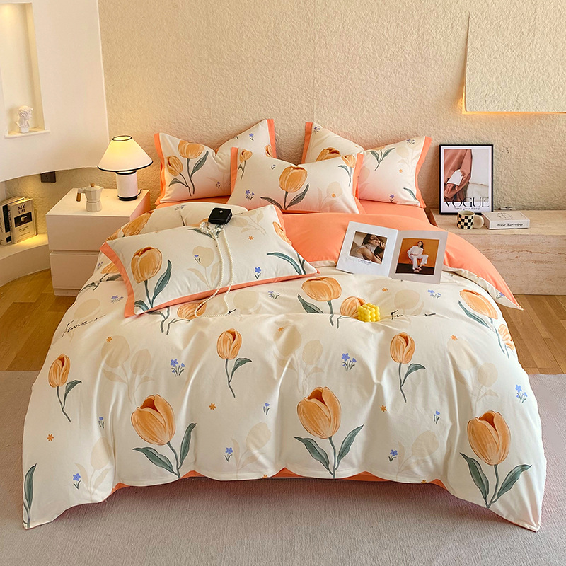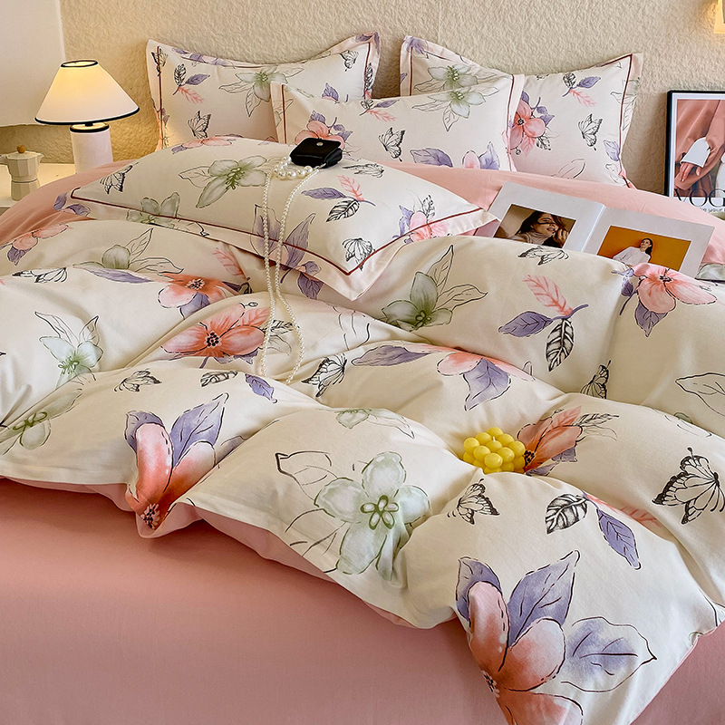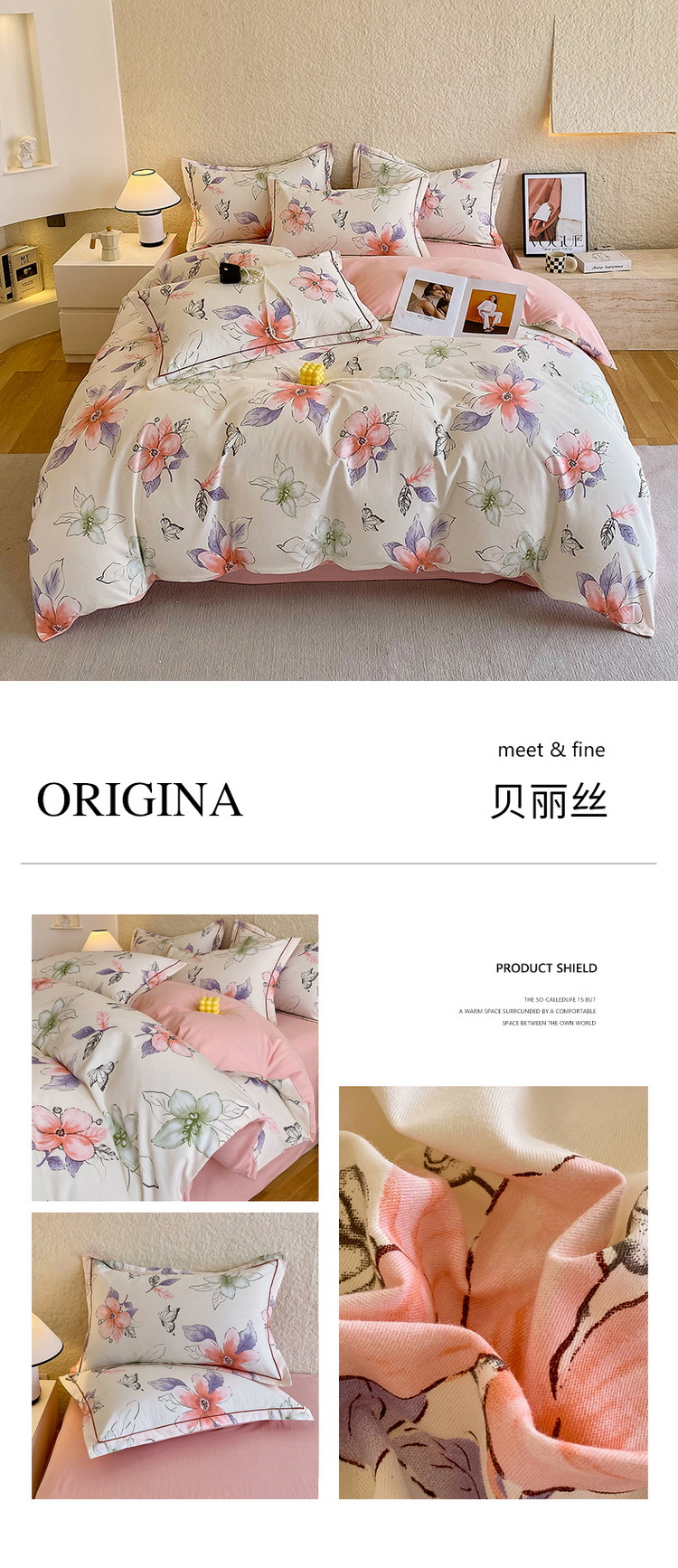 클래스 A 비 형광 신장 면화 침대 4 피스 세트 두꺼운 샌딩 인쇄 단일 이불 커버 시트 3 피스 세트