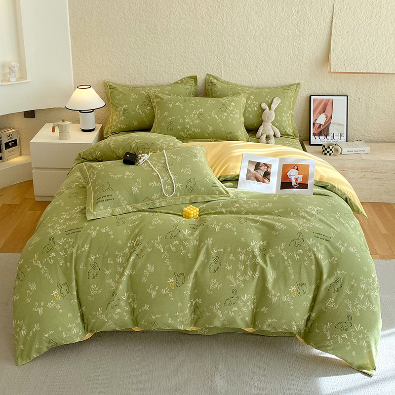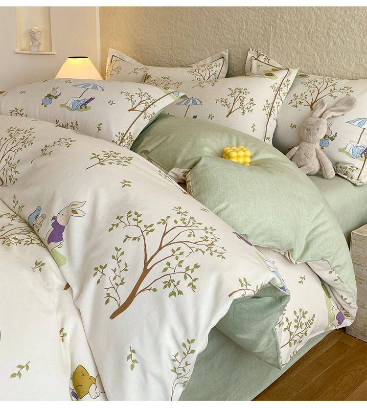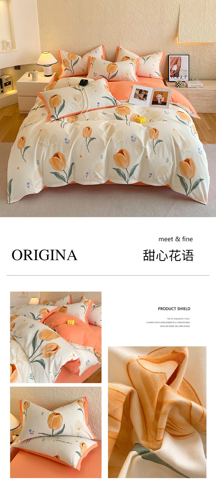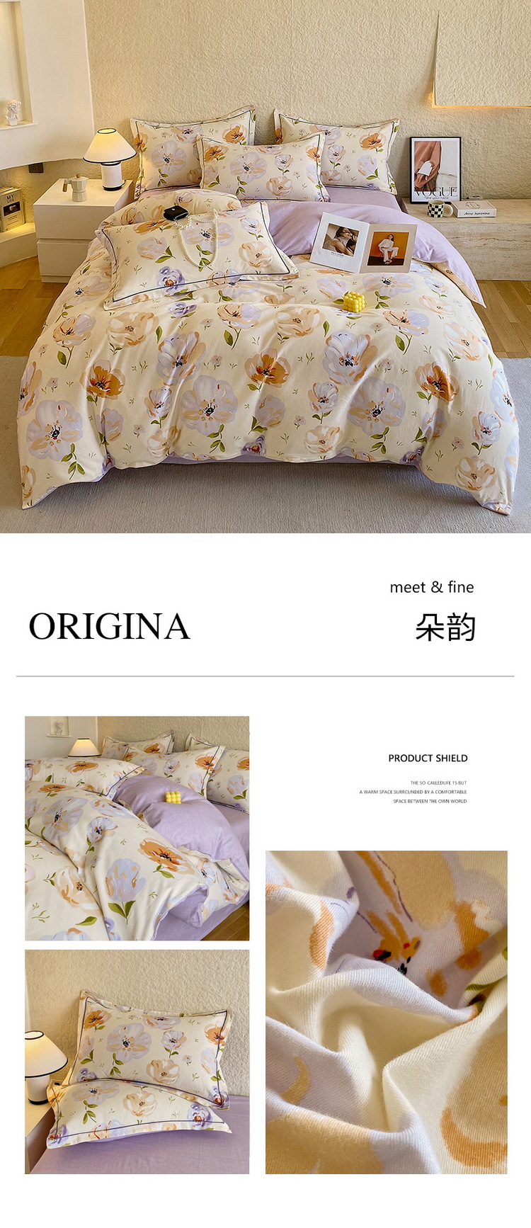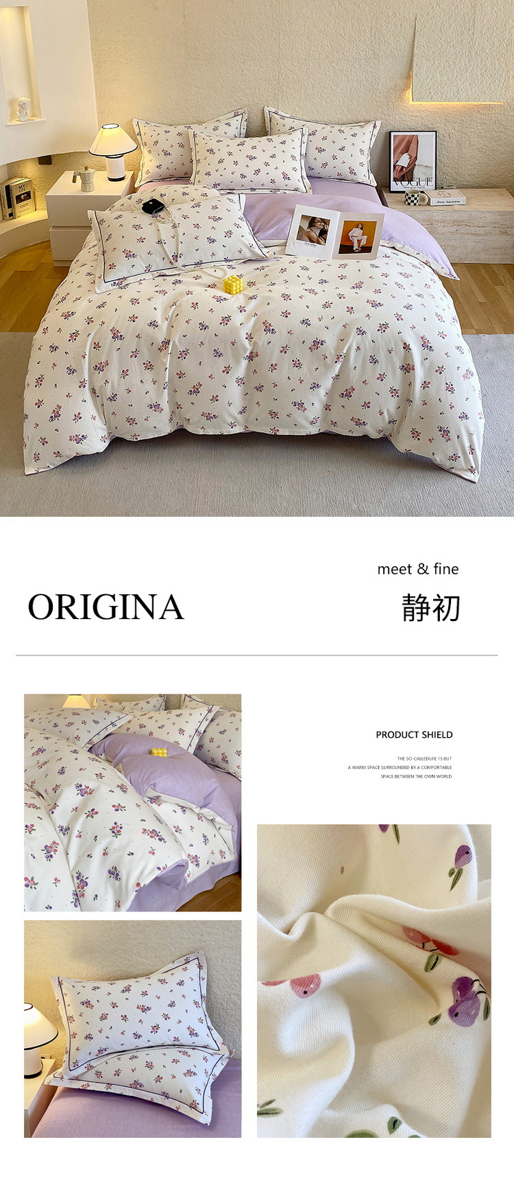 클래스 A 비 형광 신장 면화 침대 4 피스 세트 두꺼운 샌딩 인쇄 단일 이불 커버 시트 3 피스 세트