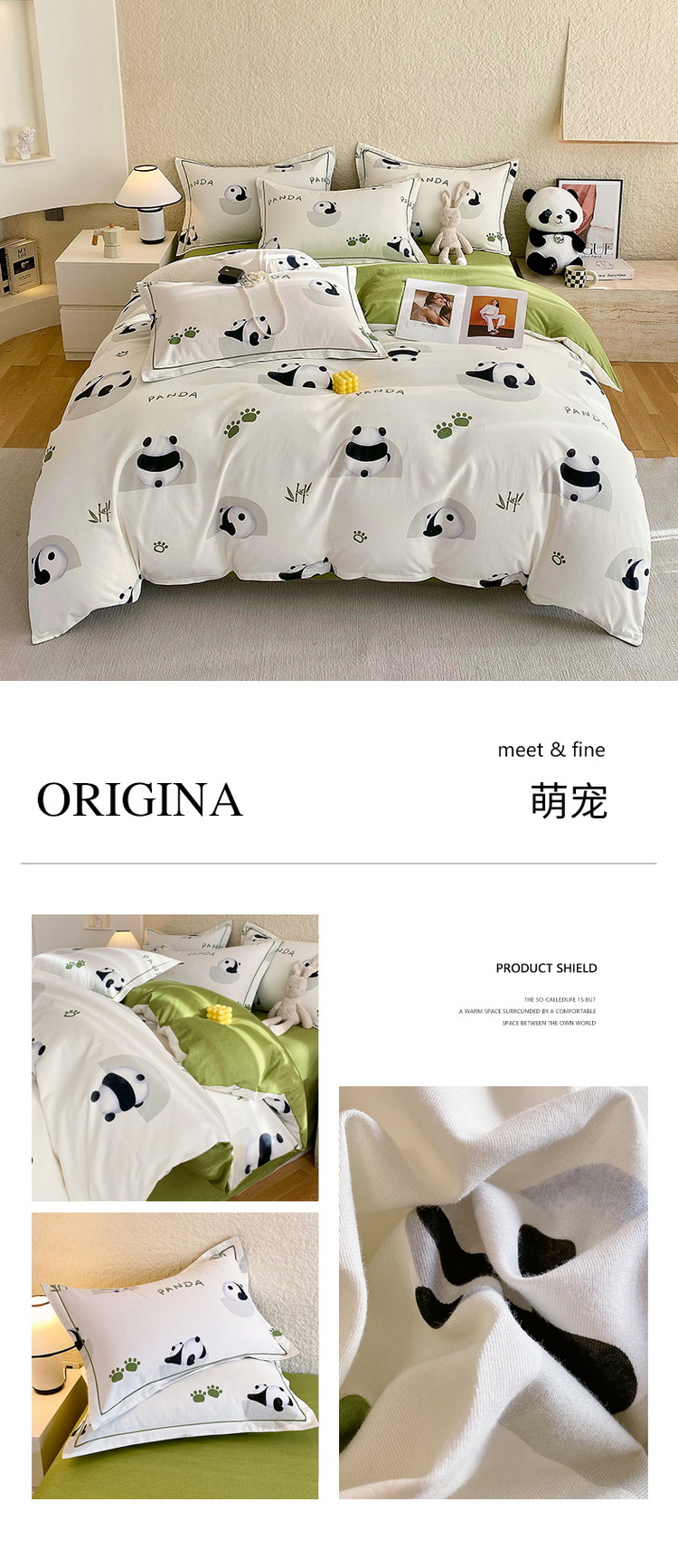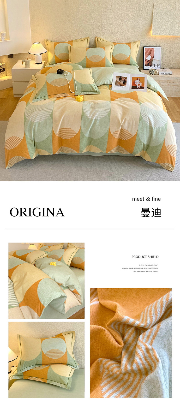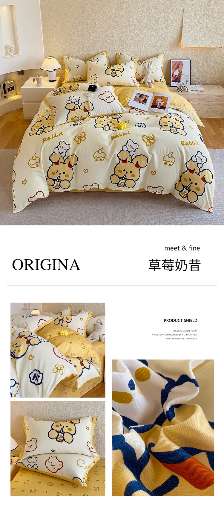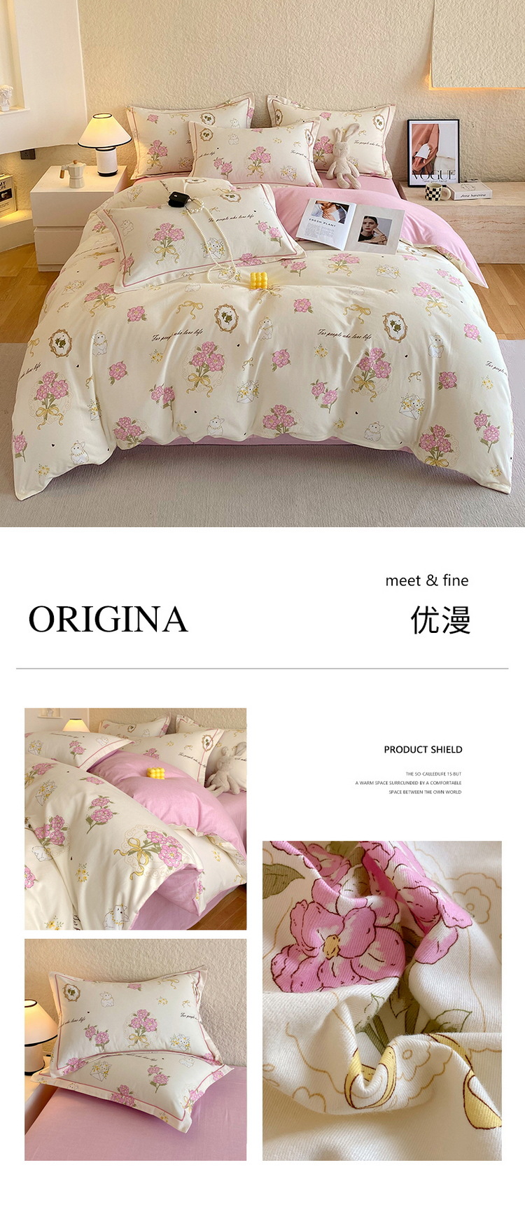 클래스 A 비 형광 신장 면화 침대 4 피스 세트 두꺼운 샌딩 인쇄 단일 이불 커버 시트 3 피스 세트