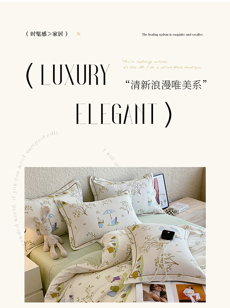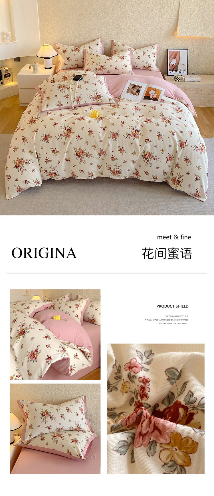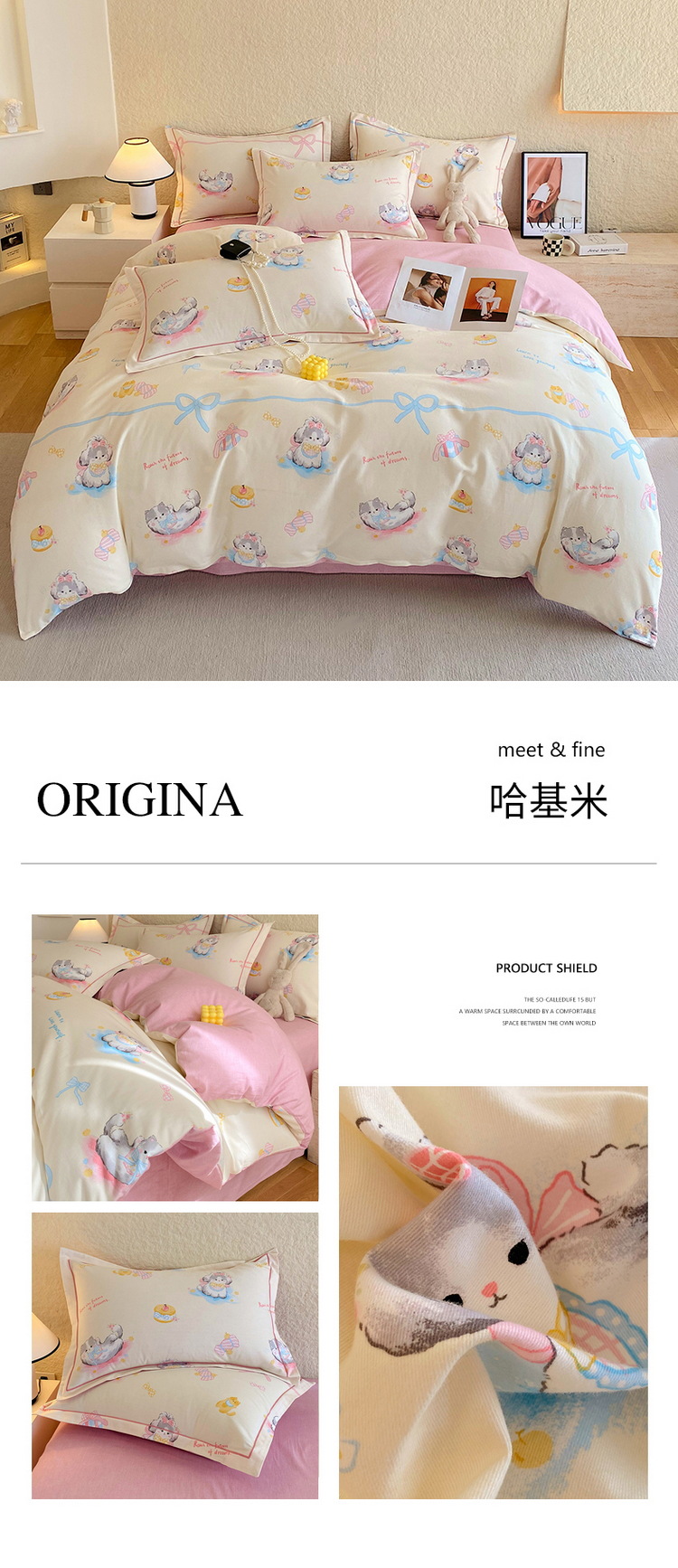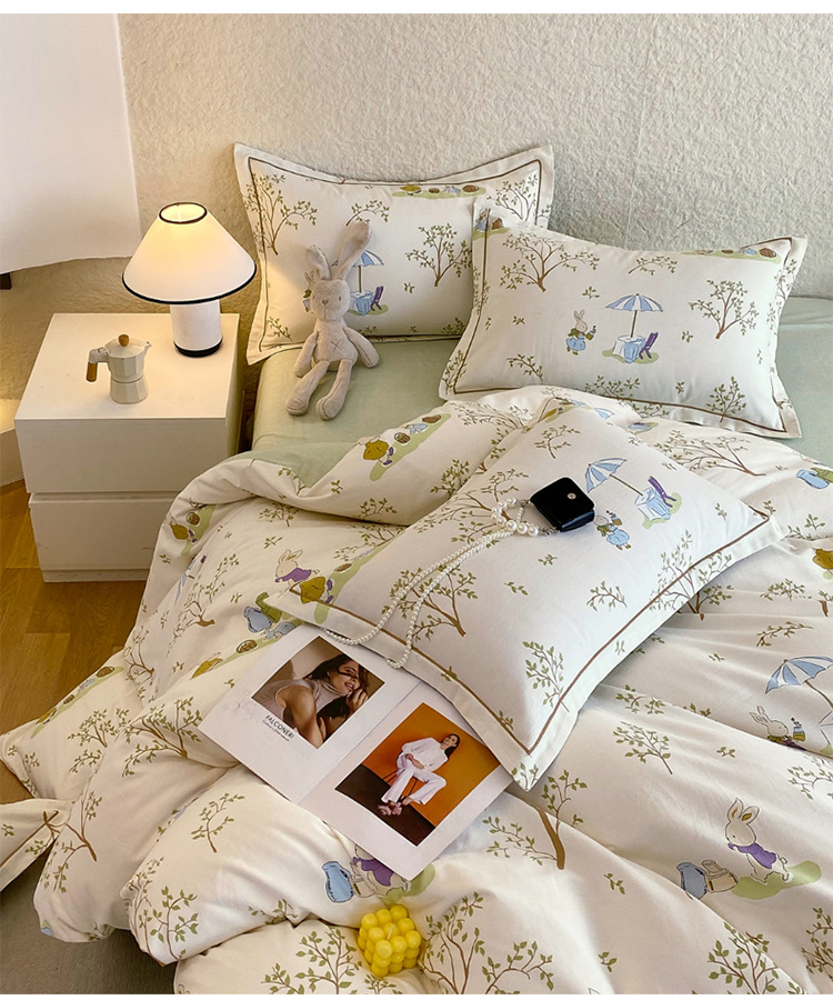 • 1.5m 침대 시트 [이불커버 200*230cm + 침대 시트 245*250cm + 베갯잇 2개] 4종 세트