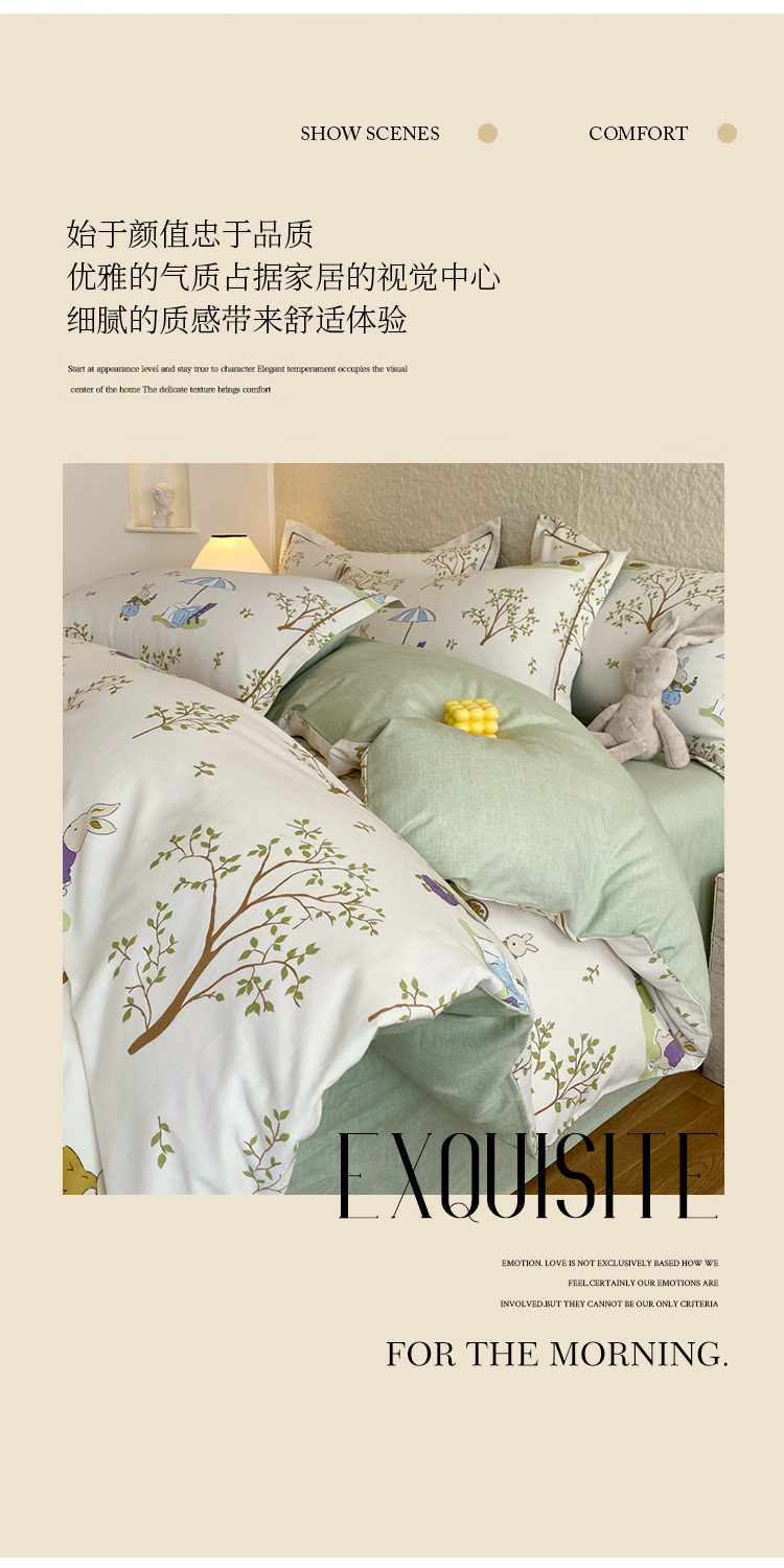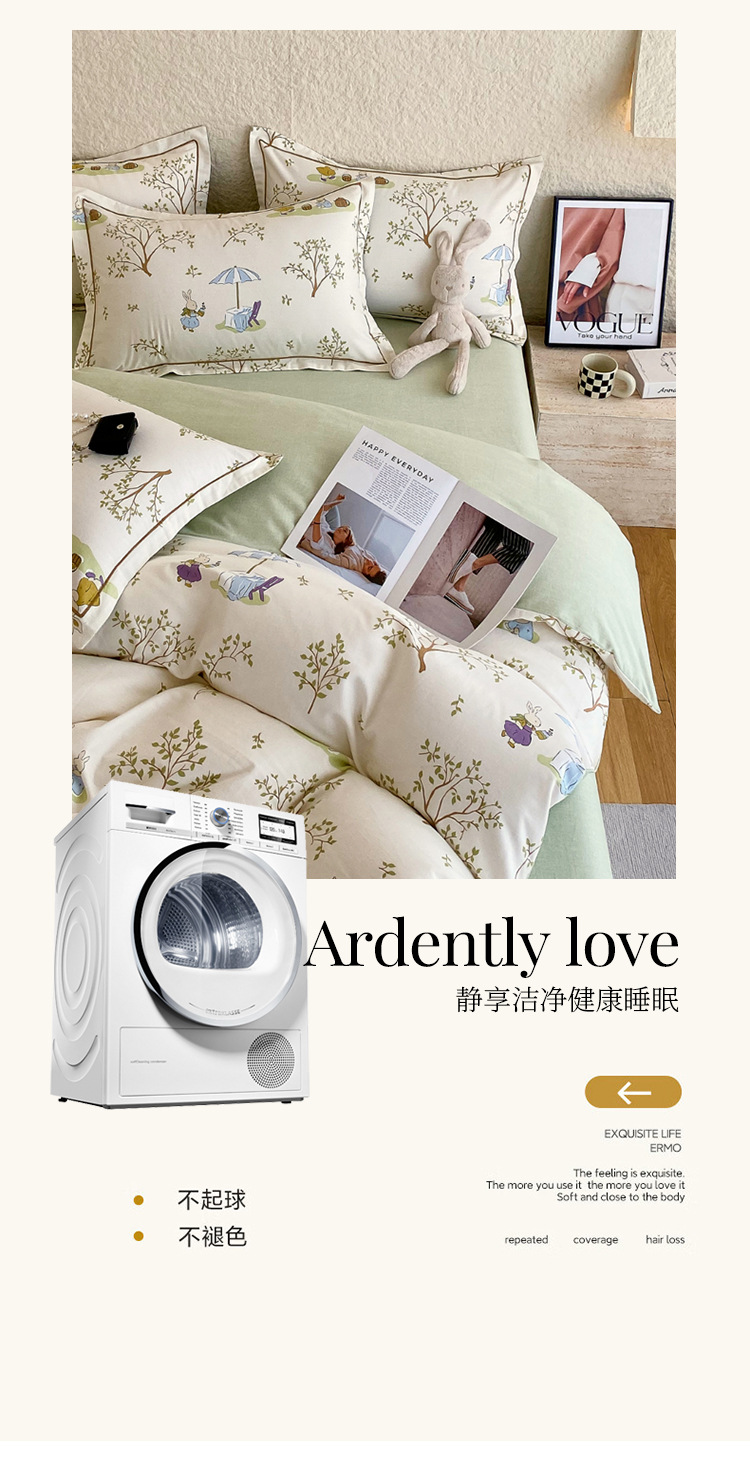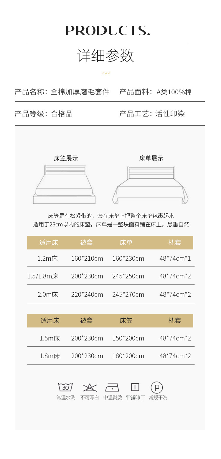 • 1.5m 침대 시트 [이불커버 200*230cm + 침대 시트 245*250cm + 베갯잇 2개] 4종 세트