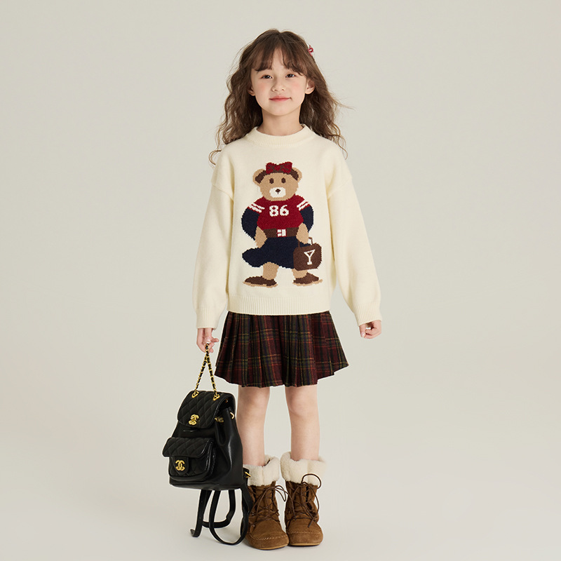 엘모 베이 베이 소녀 한국 만화 곰 스웨터 2024 겨울 어린이 두꺼운 부드러운 왁스 풀오버 스웨터 트렌디스토어 가기
