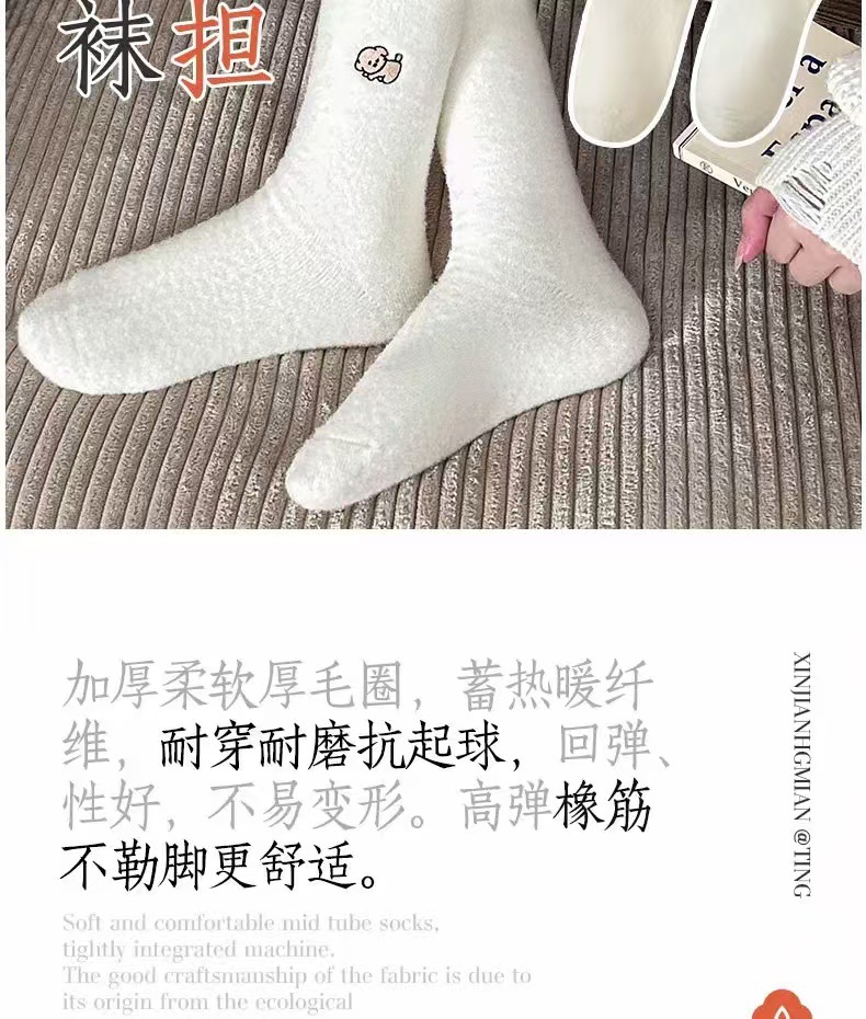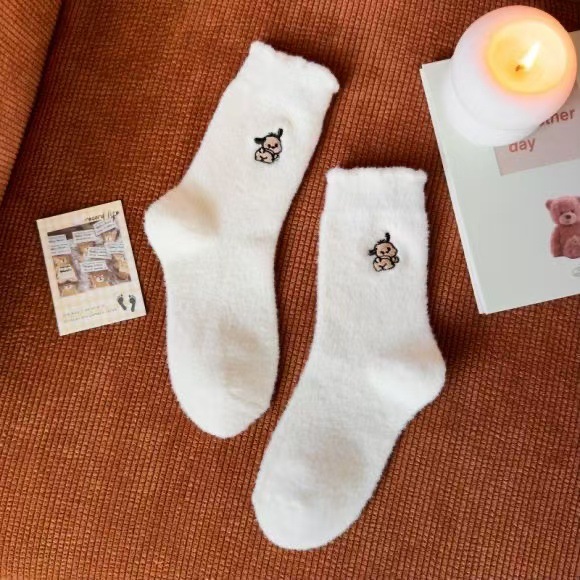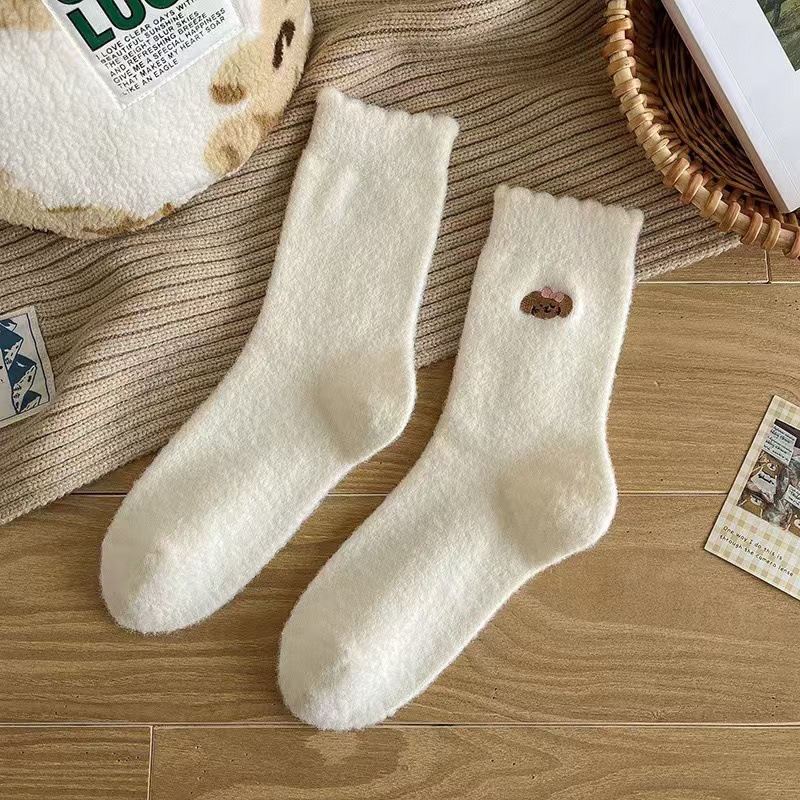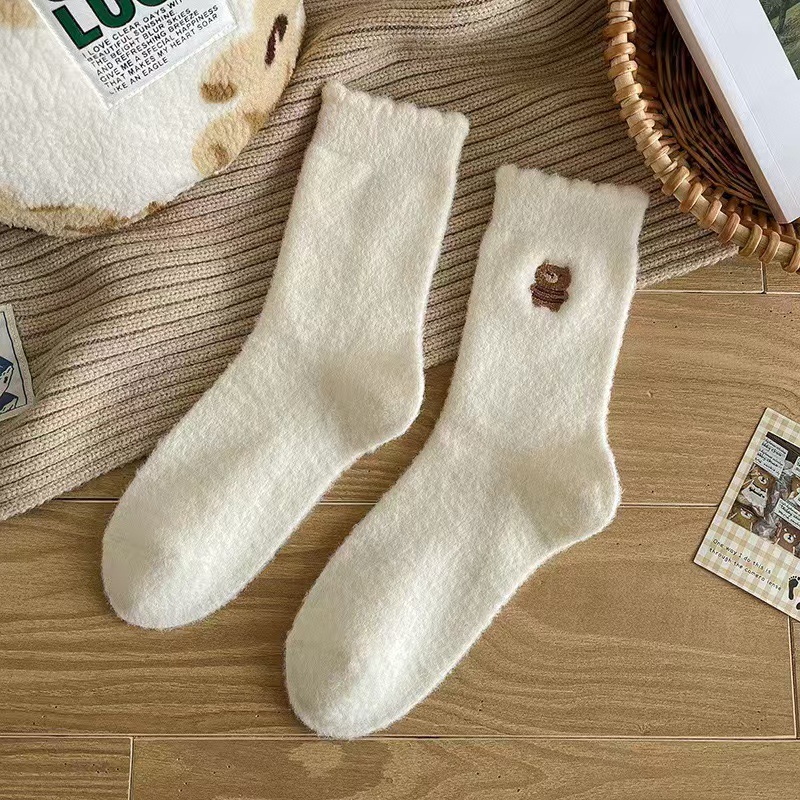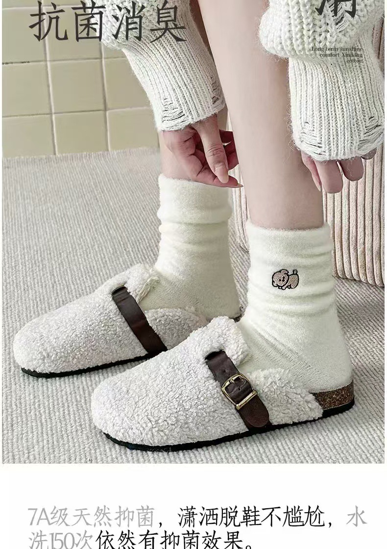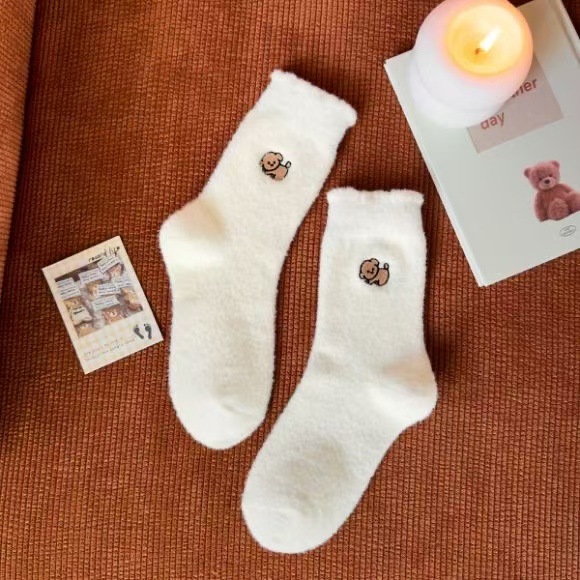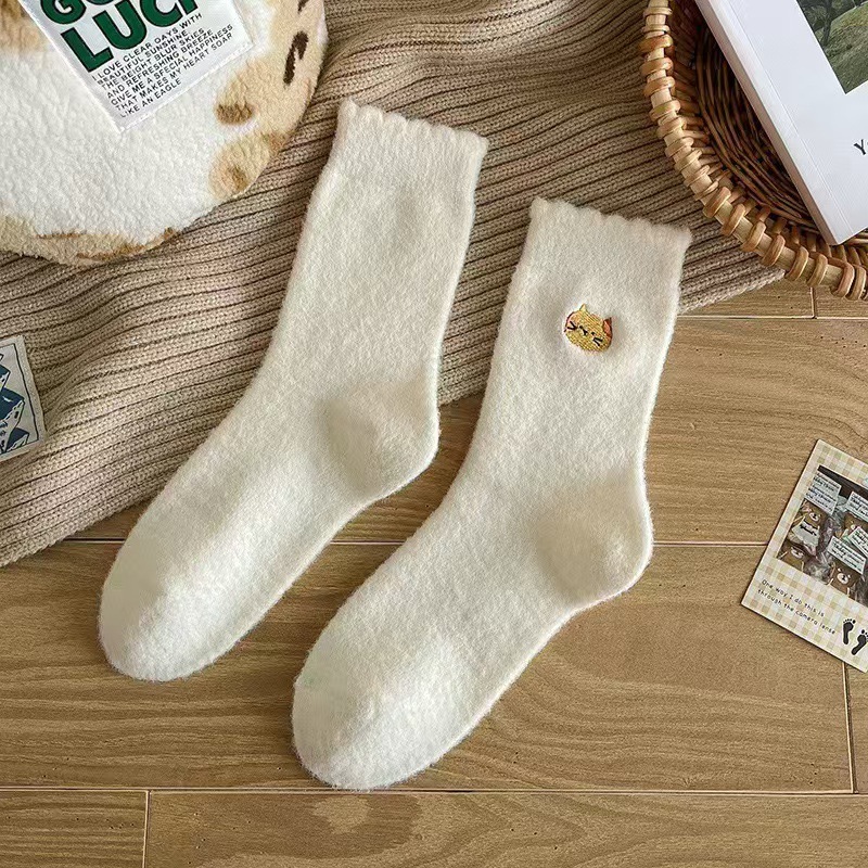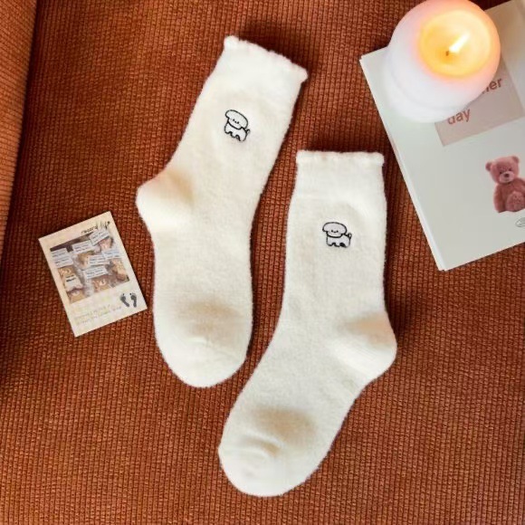 새로운 Ao 벨벳 양말 여성의 가을과 겨울 두꺼운 따뜻한 귀여운 만화 자수 여성 양말 화이트 소프트 왁스 수면 양말스토어 가기