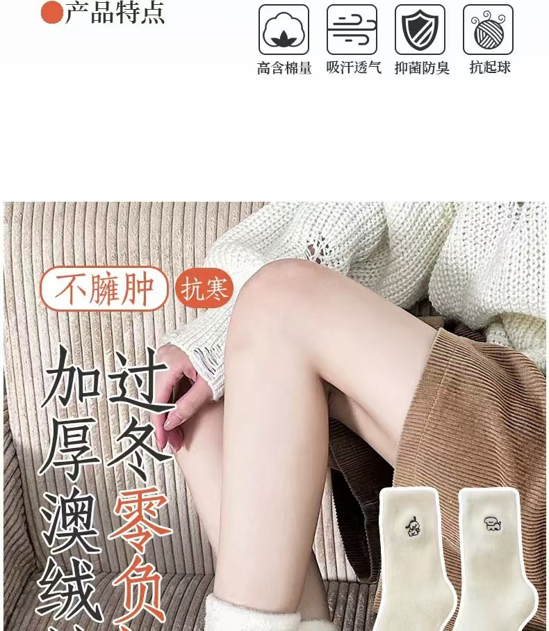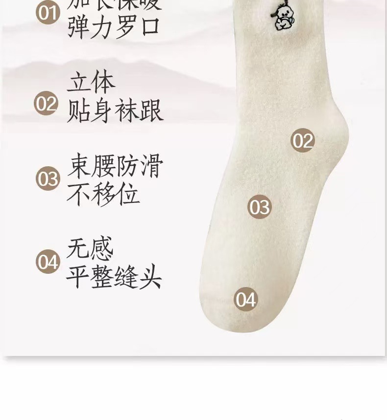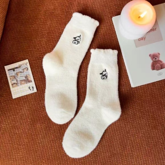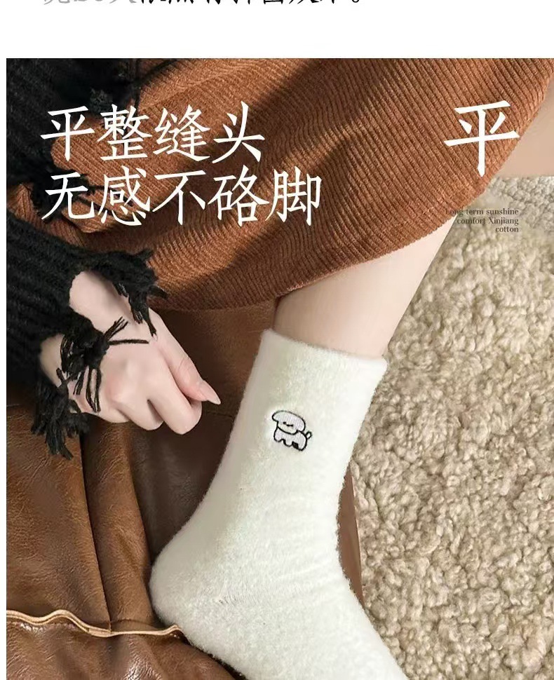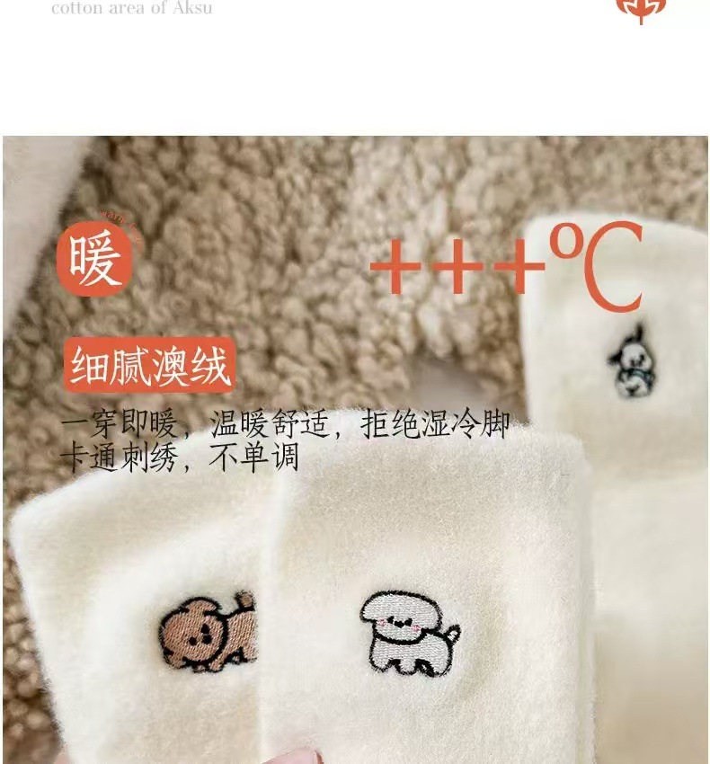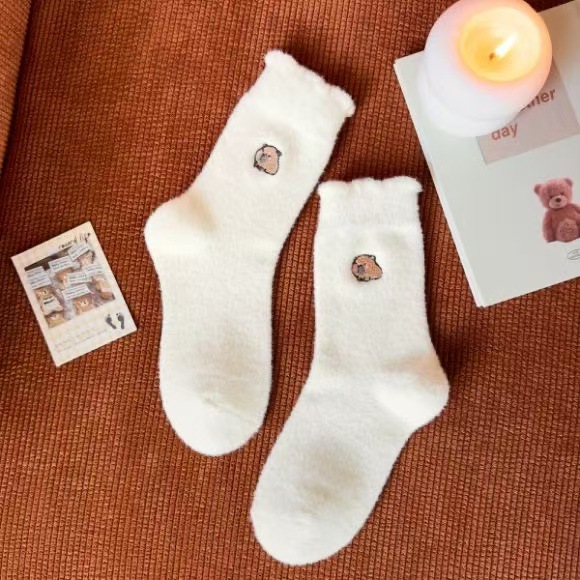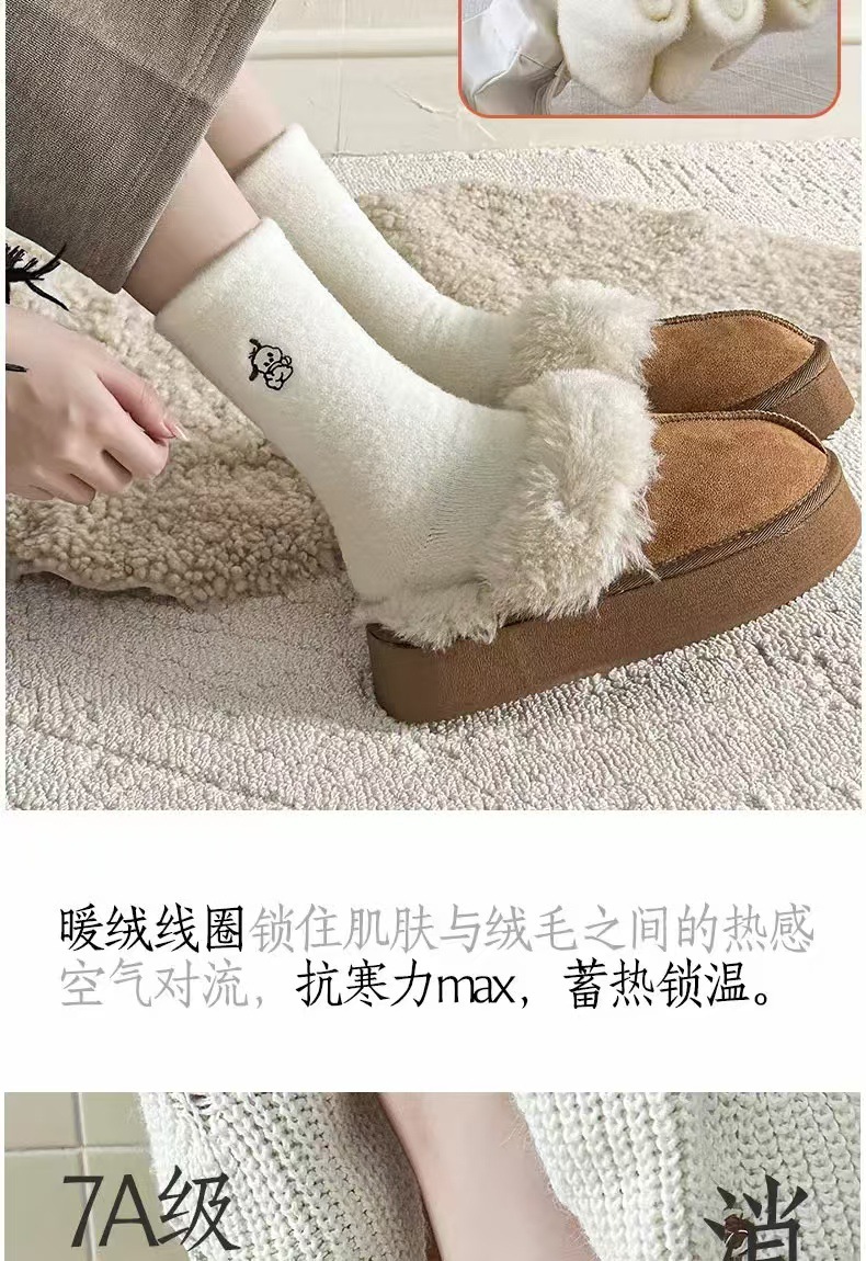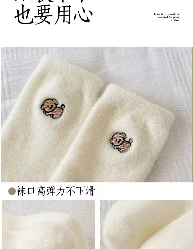 새로운 Ao 벨벳 양말 여성의 가을과 겨울 두꺼운 따뜻한 귀여운 만화 자수 여성 양말 화이트 소프트 왁스 수면 양말스토어 가기