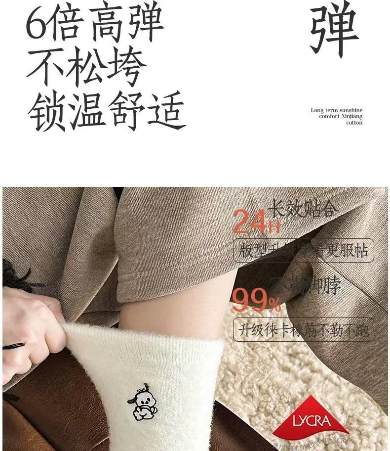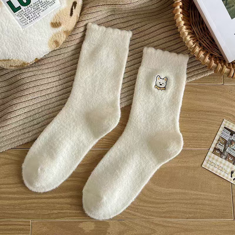 새로운 Ao 벨벳 양말 여성의 가을과 겨울 두꺼운 따뜻한 귀여운 만화 자수 여성 양말 화이트 소프트 왁스 수면 양말