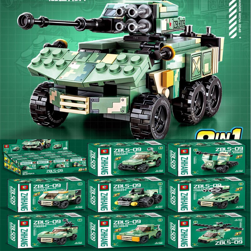 군용 바퀴 보병 전투 차량 조립 새로운 상품 뜨거운 판매 건물 블록 2 원 상점 지프 퍼즐 보이 모델 장난감스토어 가기