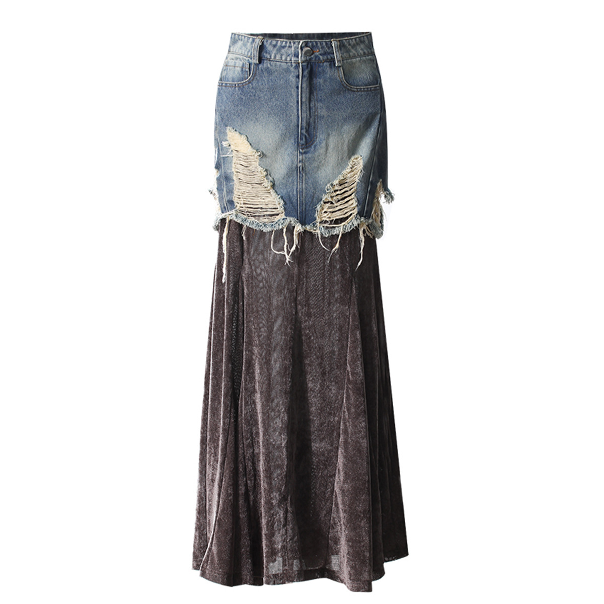 • 다크 그레이/데님 블루 스커트