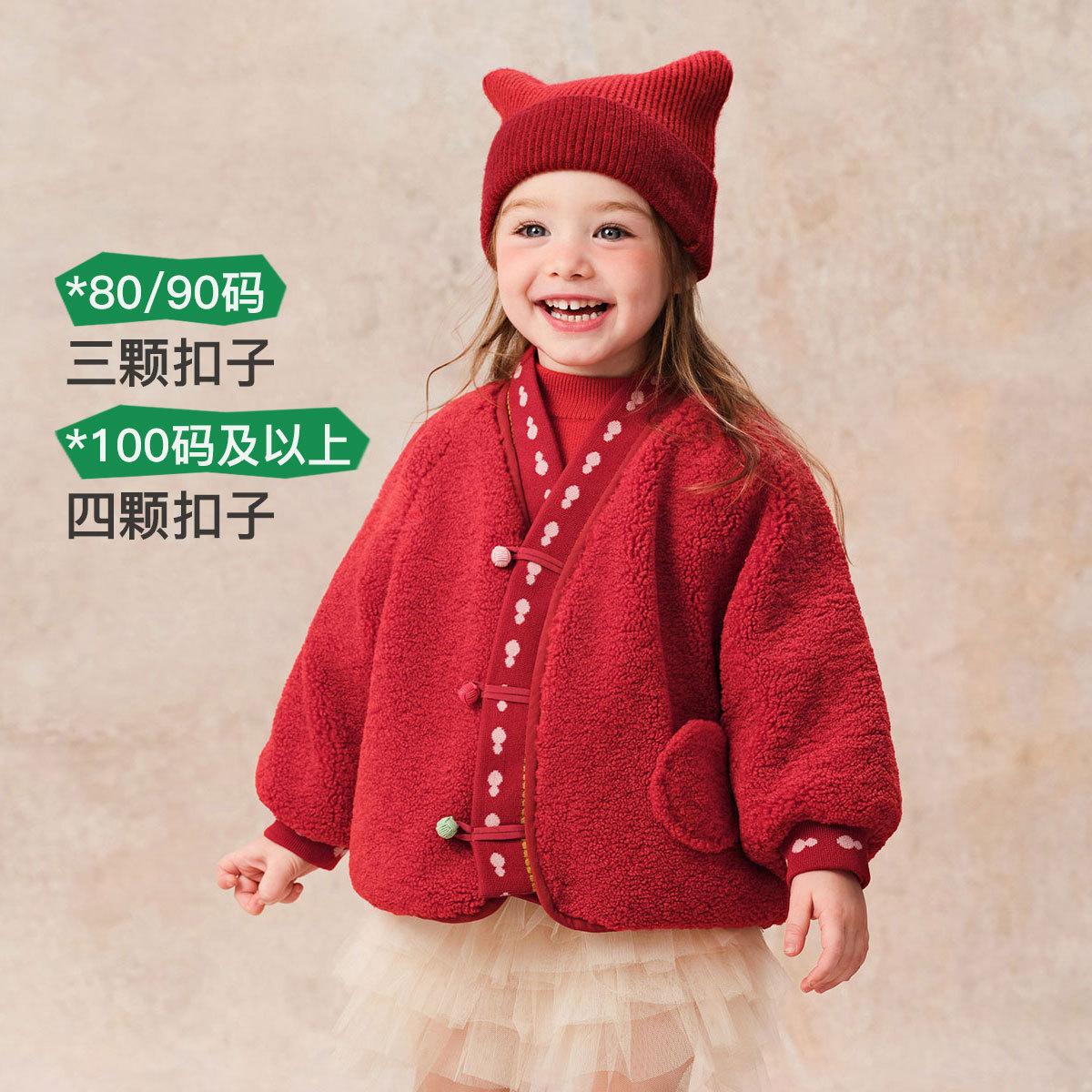 여아용 달콤한 미국 스타일 코트, Tongbei 아동복, 2025년 겨울 신상, 귀여운 버클 장식의 따뜻한 새해복스토어 가기