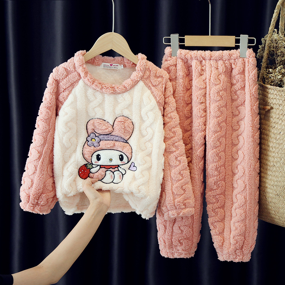 어린이 잠옷 플란넬 겨울 산호 벨벳 패딩 귀여운 소녀 어린이 집 옷 세트 제조 업체 도매스토어 가기