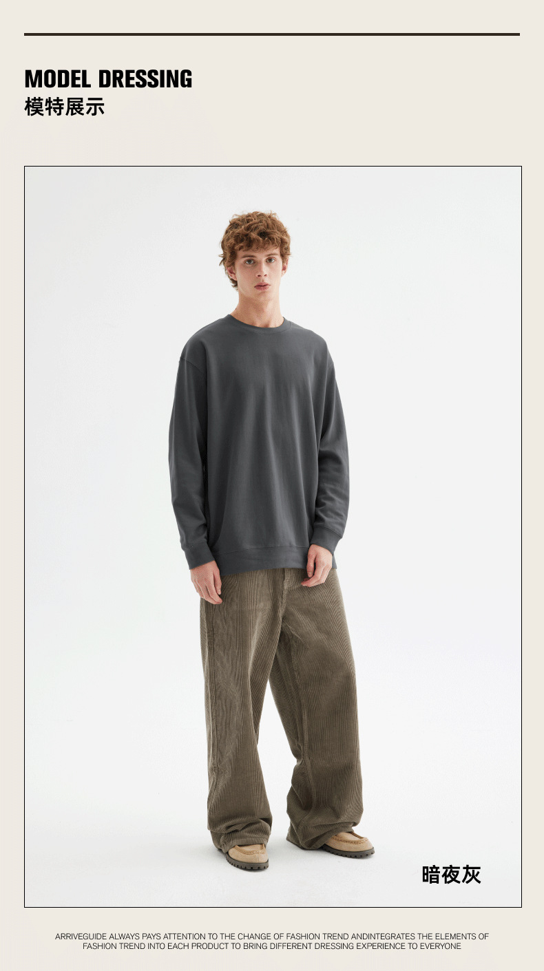 AG600g 남성용 스웨트 셔츠 어깨 긴 소매 슈퍼 소프트 벨벳없는 크루 넥 가을 라이트 성숙한 캐주얼 루즈 패션 브랜드 재킷스토어 가기