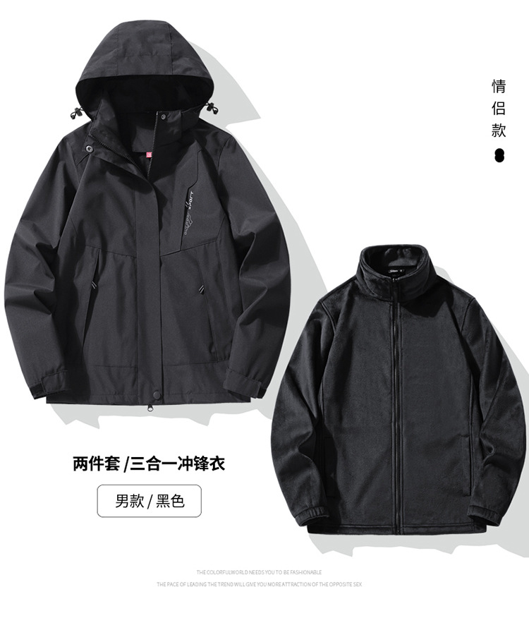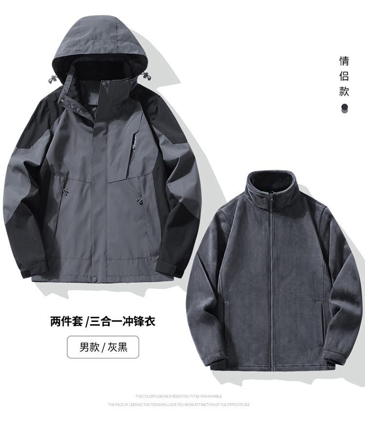 커플의 야외 등산 기모 두꺼운 내부 패드 분리 가능한 2 피스 재킷 3 인 1 투 피스 재킷스토어 가기