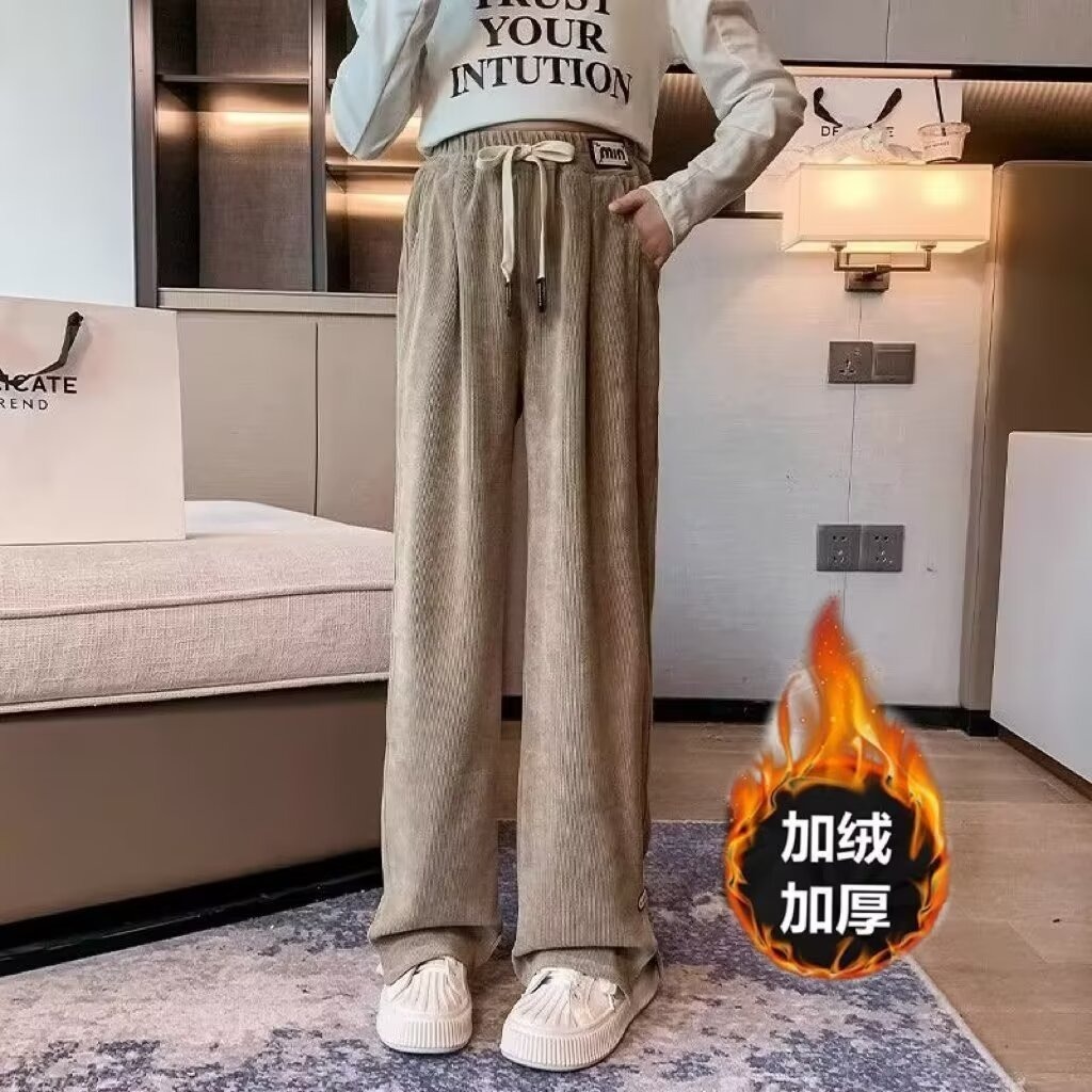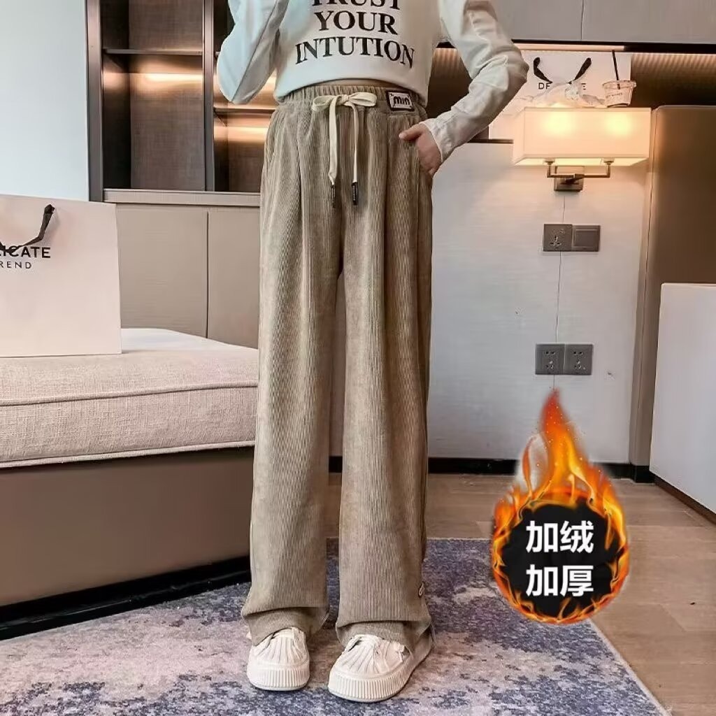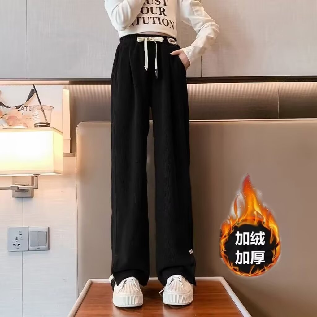 소녀 기모 바지 가을 겨울 2024 새로운 대형 어린이 통합 양털 와이드 다리 바지 어린이 겨울 분할 스트레이트 바지스토어 가기