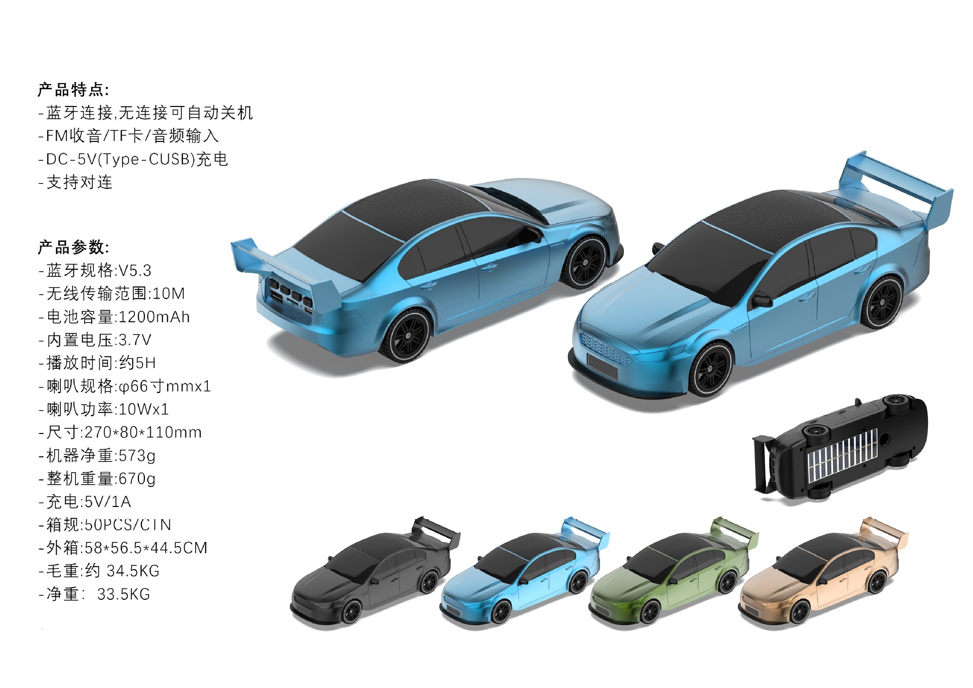 新款跑车款蓝牙音箱,兼具时尚外观的跑车款多功能播放器。