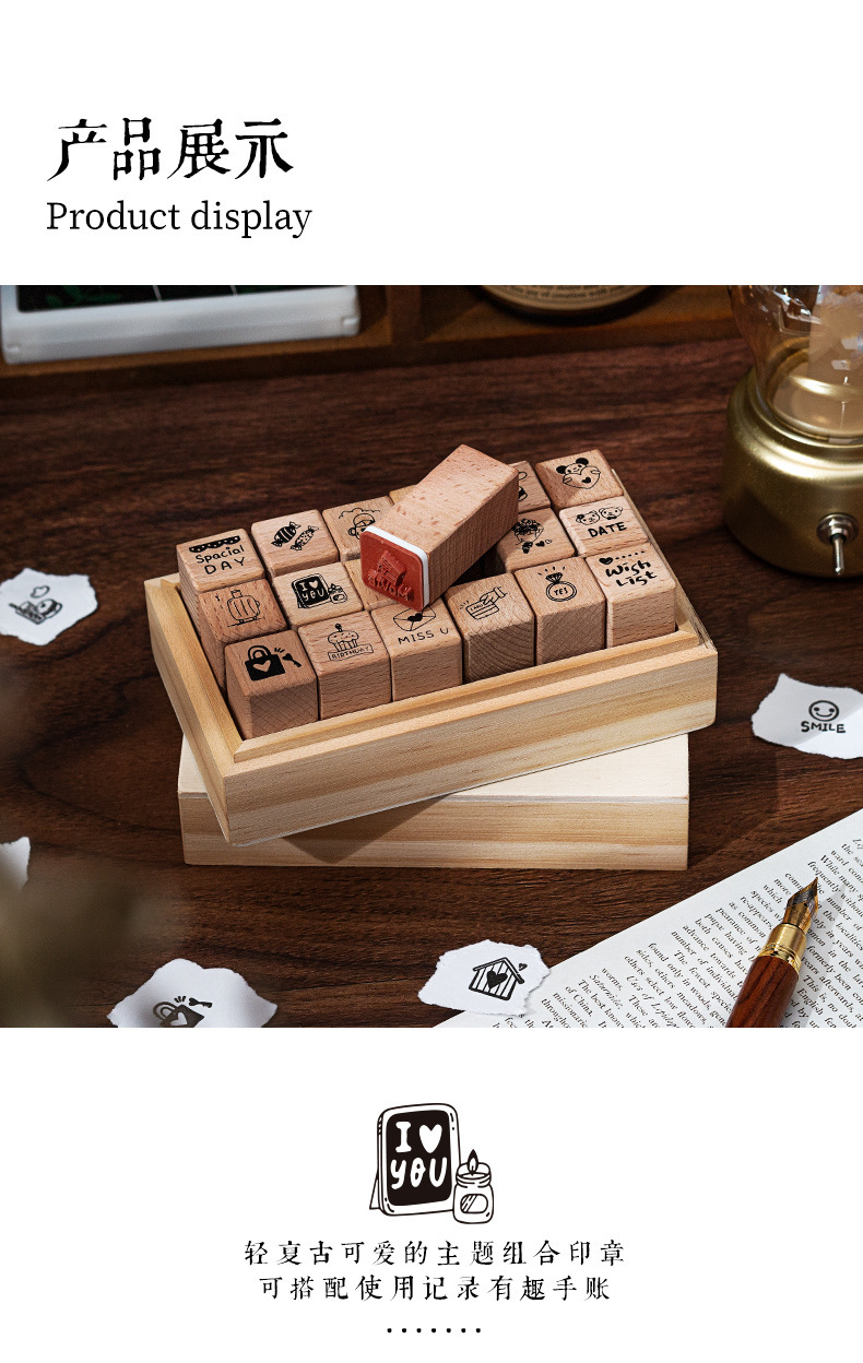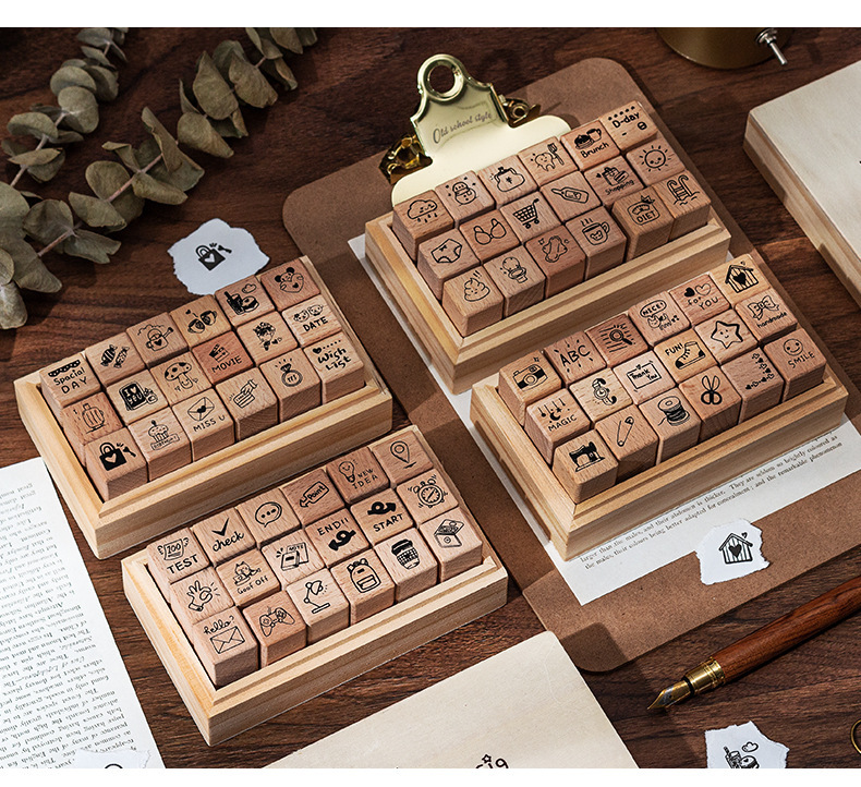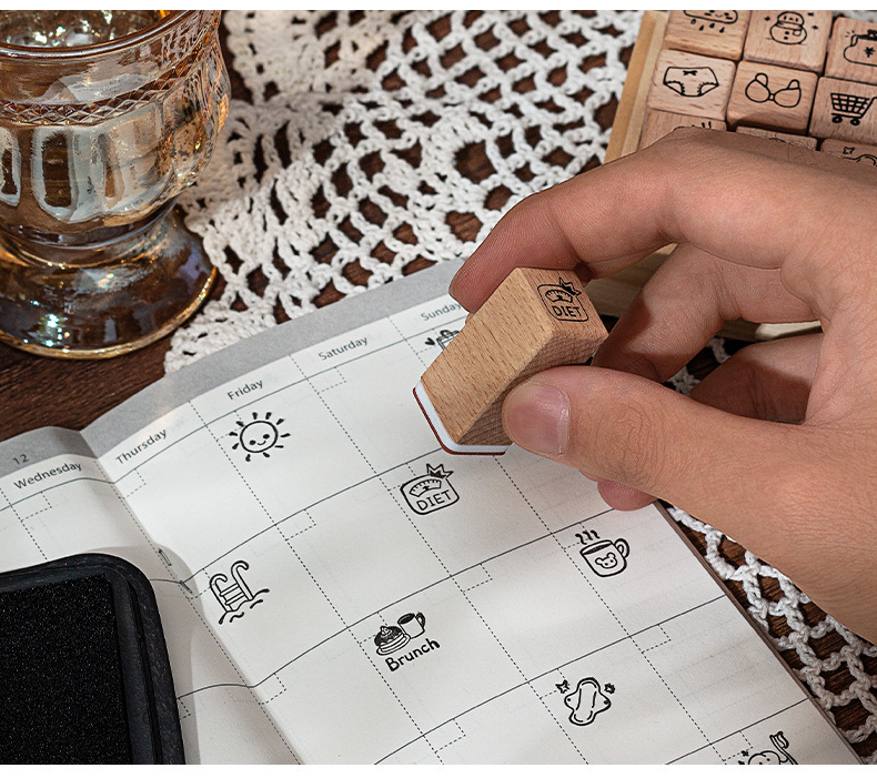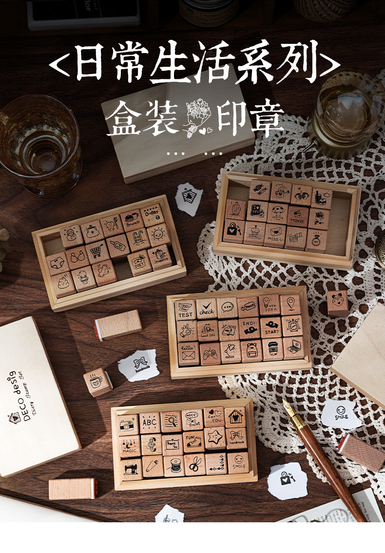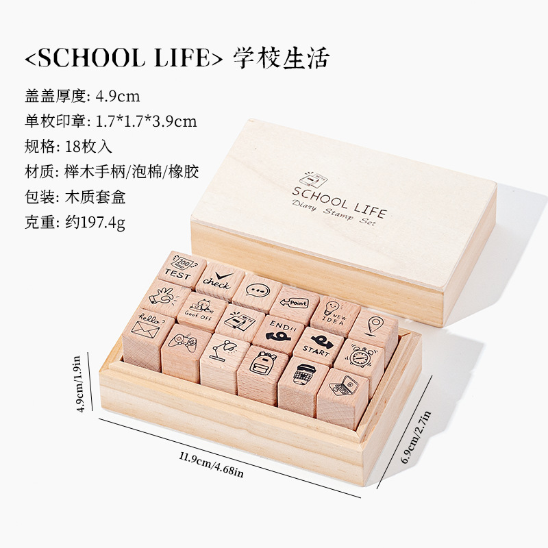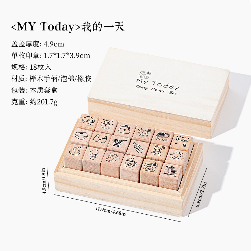 일상 생활 18 너도밤 물개 세트 상자 diy 손 계정 일기 장식 재료 씰 나무 박스형 씰