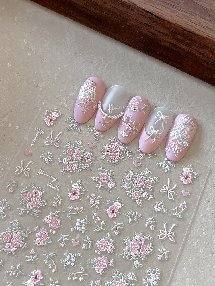그물 빨간 구호 빛 핑크 꽃 네일 아트 스티커 사랑 활 달콤한 바람 접착 네일 장식 도매