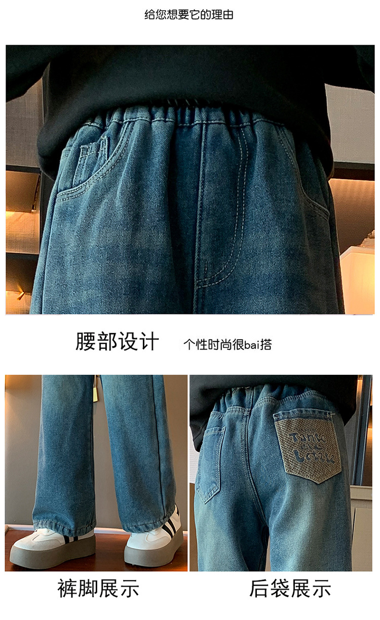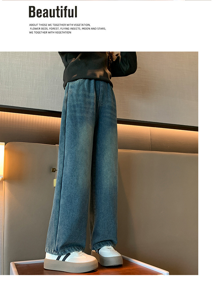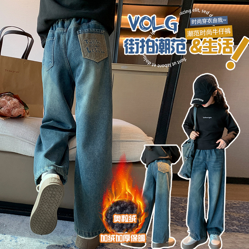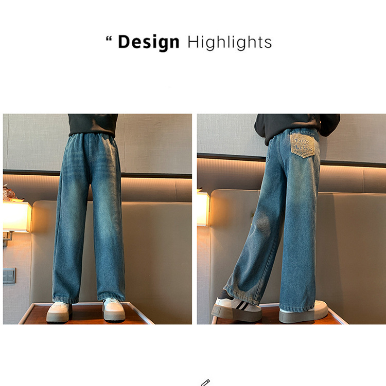 소녀 청바지 2024 년 봄과 가을 새로운 어린이 가을 착용 큰 어린이 바지 소녀 스트레이트 다리 바지 올매치 와이드 다리 바지