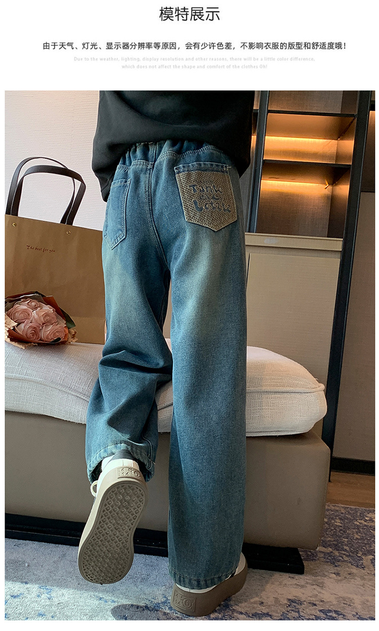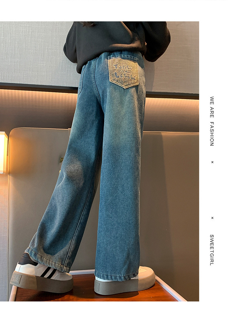 소녀 청바지 2024 년 봄과 가을 새로운 어린이 가을 착용 큰 어린이 바지 소녀 스트레이트 다리 바지 올매치 와이드 다리 바지스토어 가기