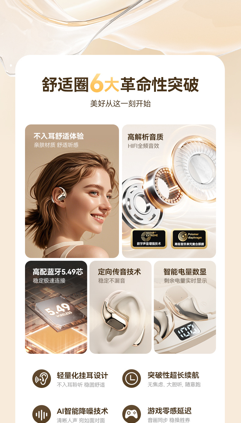 새로운 OWS 귀에 걸려있는 무선 블루투스 헤드셋 전원 디스플레이 긴 내구성 귀 열린 헤드셋에 없습니다스토어 가기
