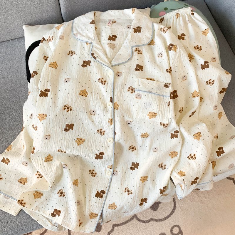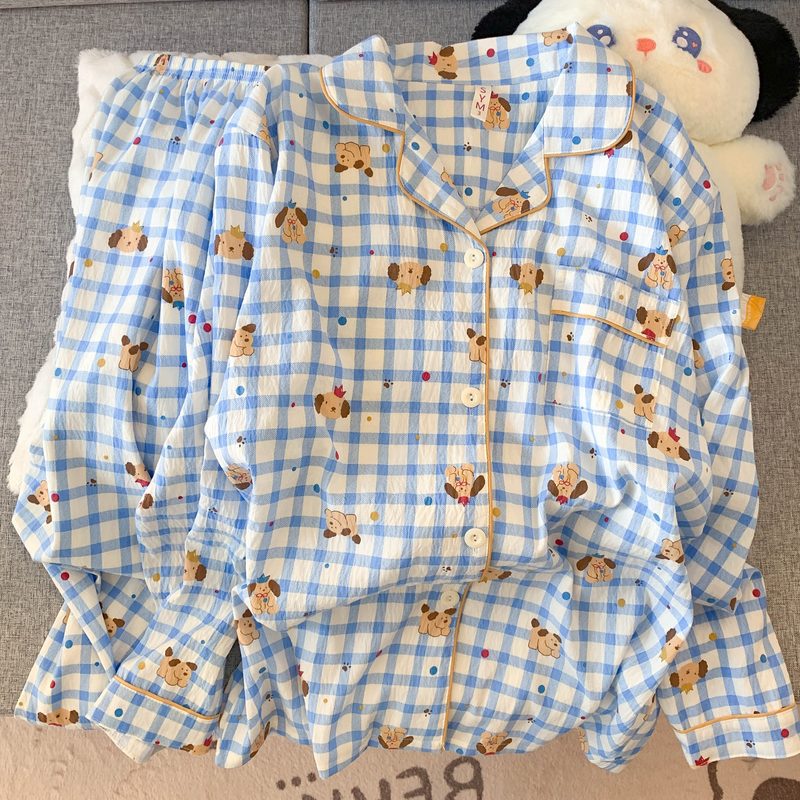 가슴 패드 플러스 사이즈 잠옷 여성 만화 왕 왕 왕 강아지 봄과 가을 귀여운 긴 소매 투피스 세트는 제조 업체 도매 외부에서 착용 할 수 있습니다