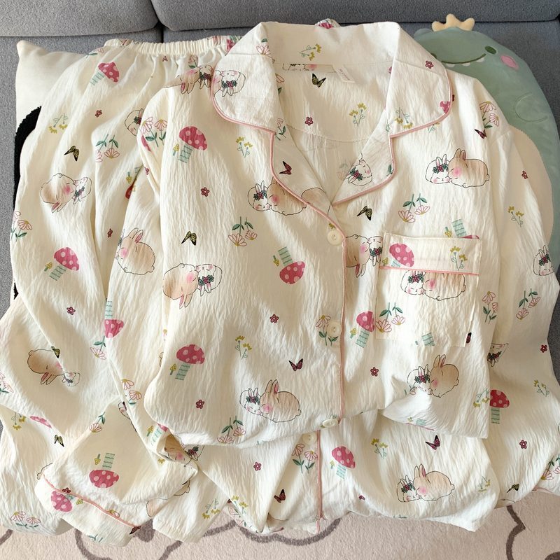• (가슴패드 없음) [Yunduo Cotton] 튤립우유토끼 (긴팔+긴바지)
