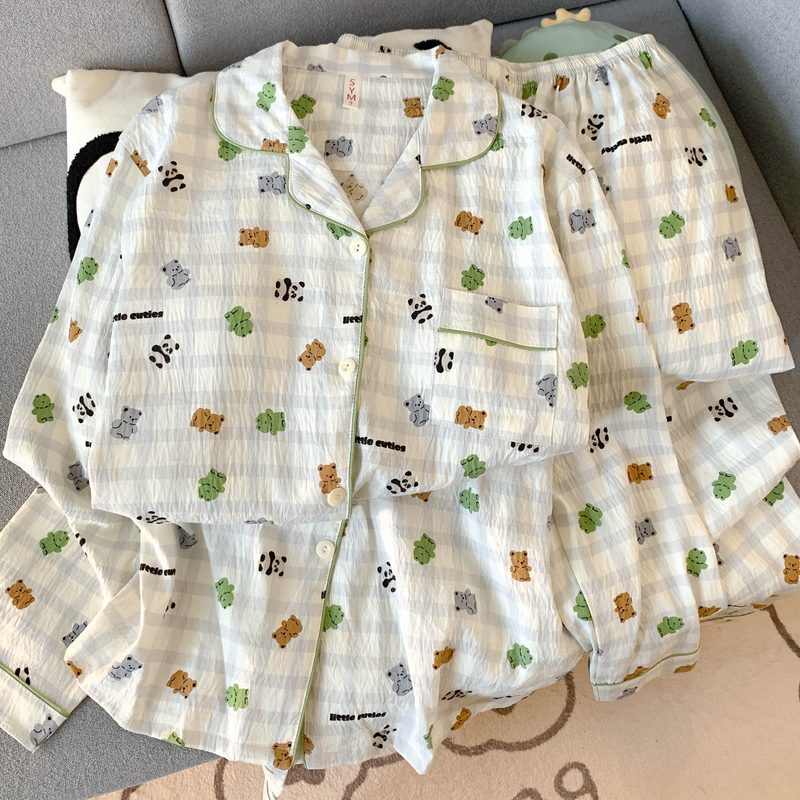 • (가슴패드 없음) [Yunduo Cotton] 개구리 체크무늬 곰 (긴팔+긴바지)
