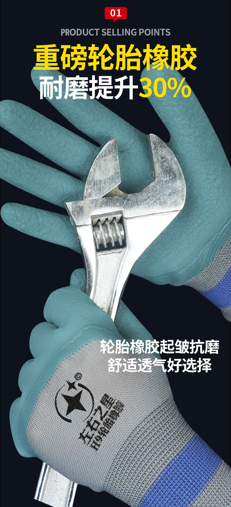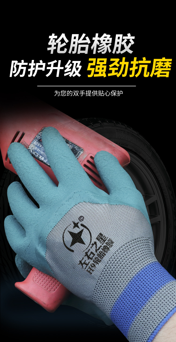좌우스타 타이어 고무 작업용 장갑 반가죽 코팅 내마모성 건설 현장 보호 공장용 내유성 미끄럼 방지