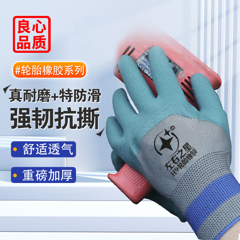 좌우스타 타이어 고무 작업용 장갑 반가죽 코팅 내마모성 건설 현장 보호 공장용 내유성 미끄럼 방지스토어 가기
