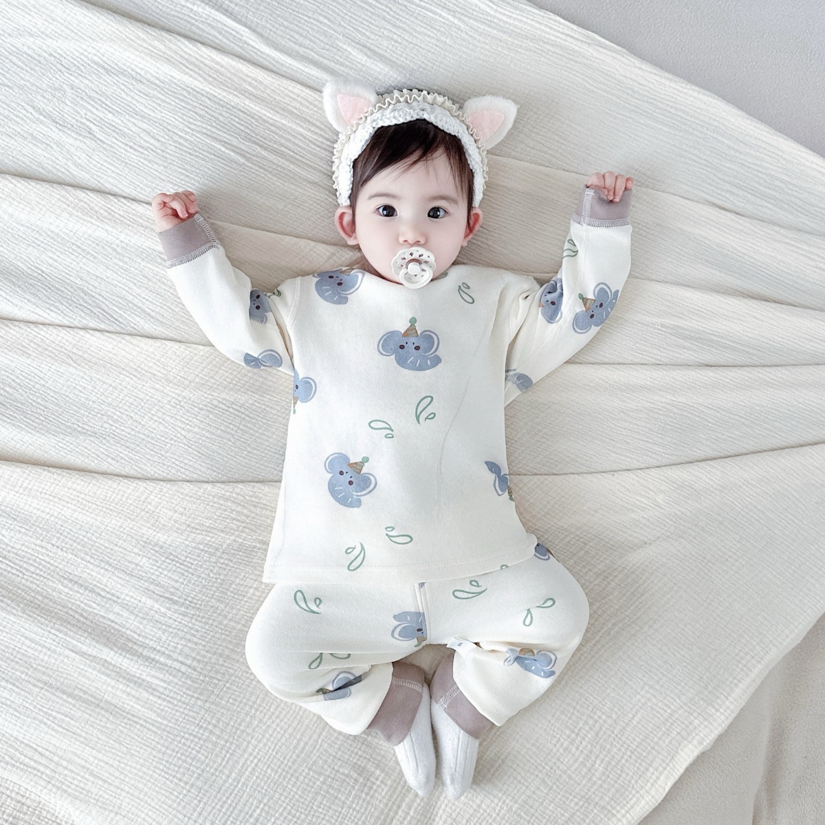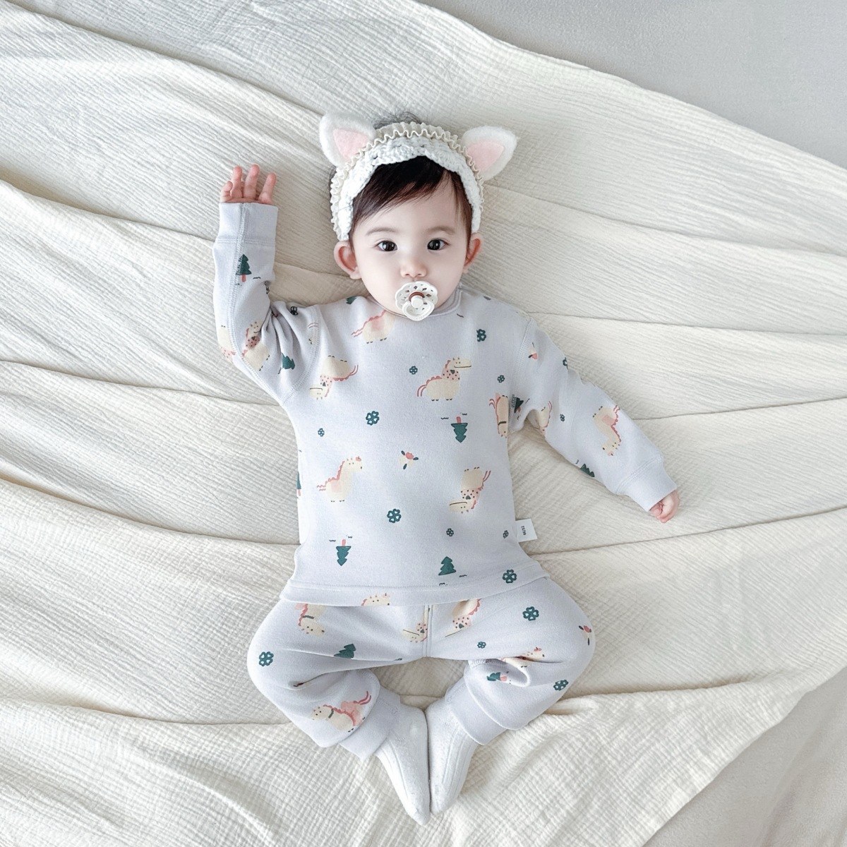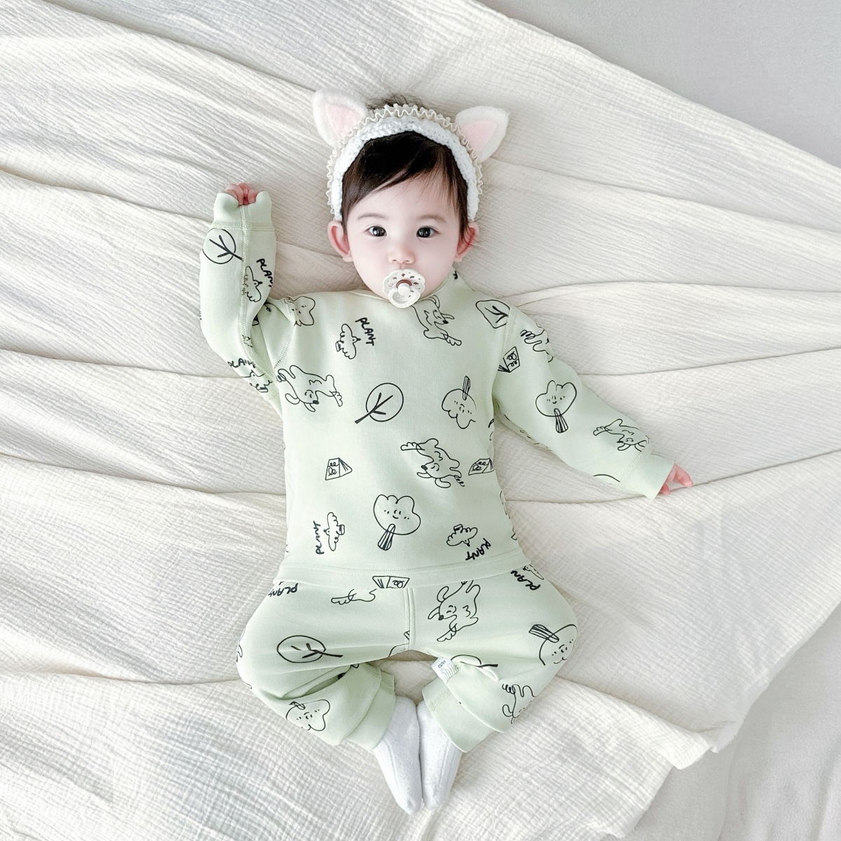 아기 가을옷 세트, 하이웨이스트 잠옷, 홈웨어, 남녀 아기용 따뜻한 무봉제 이너웨어