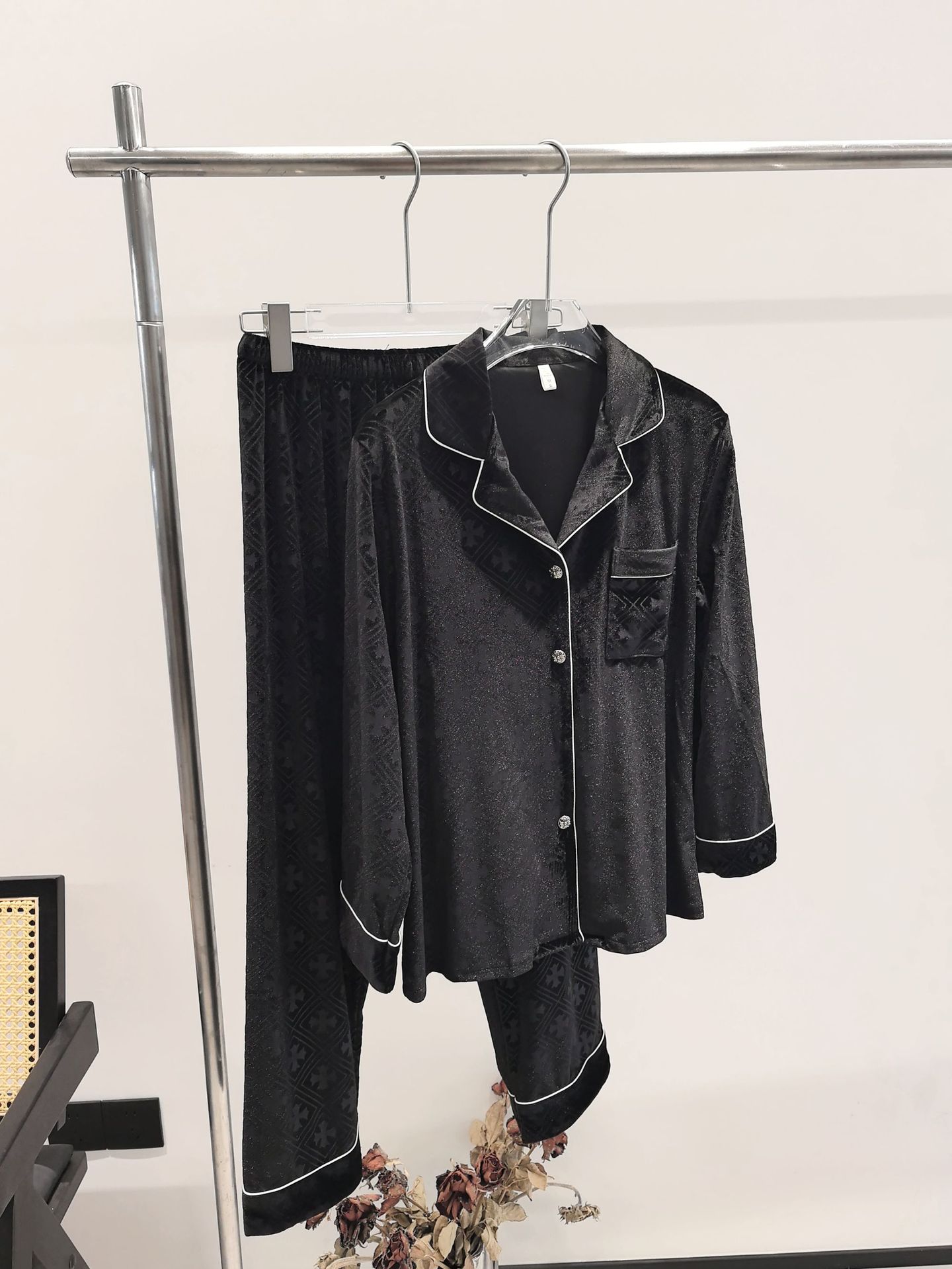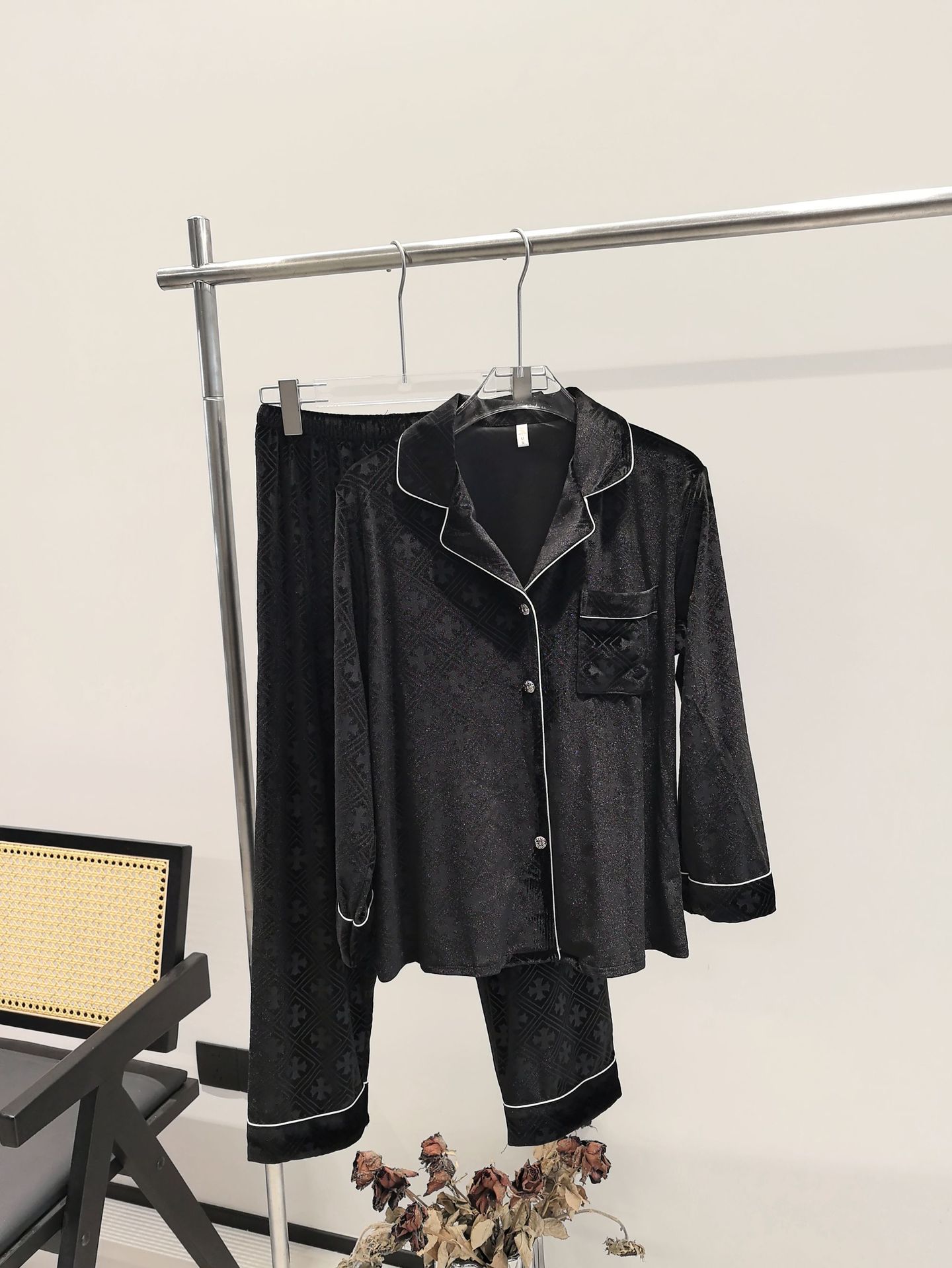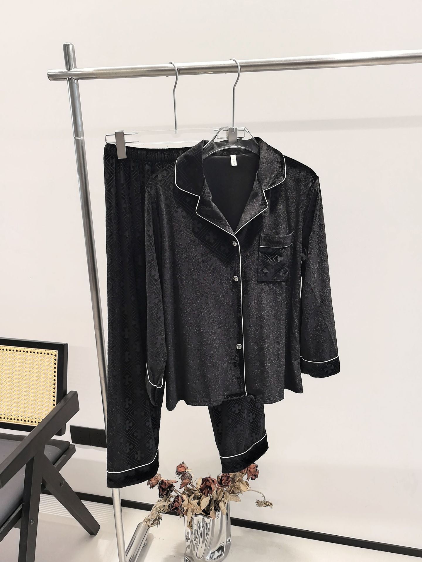 커플의 골든 벨벳 잠옷 가을과 겨울 달콤한 여성의 하이 엔드 양각 빅 브랜드 블랙 홈 의류 세트 남성스토어 가기