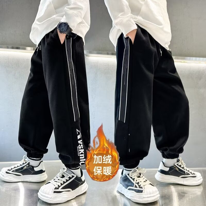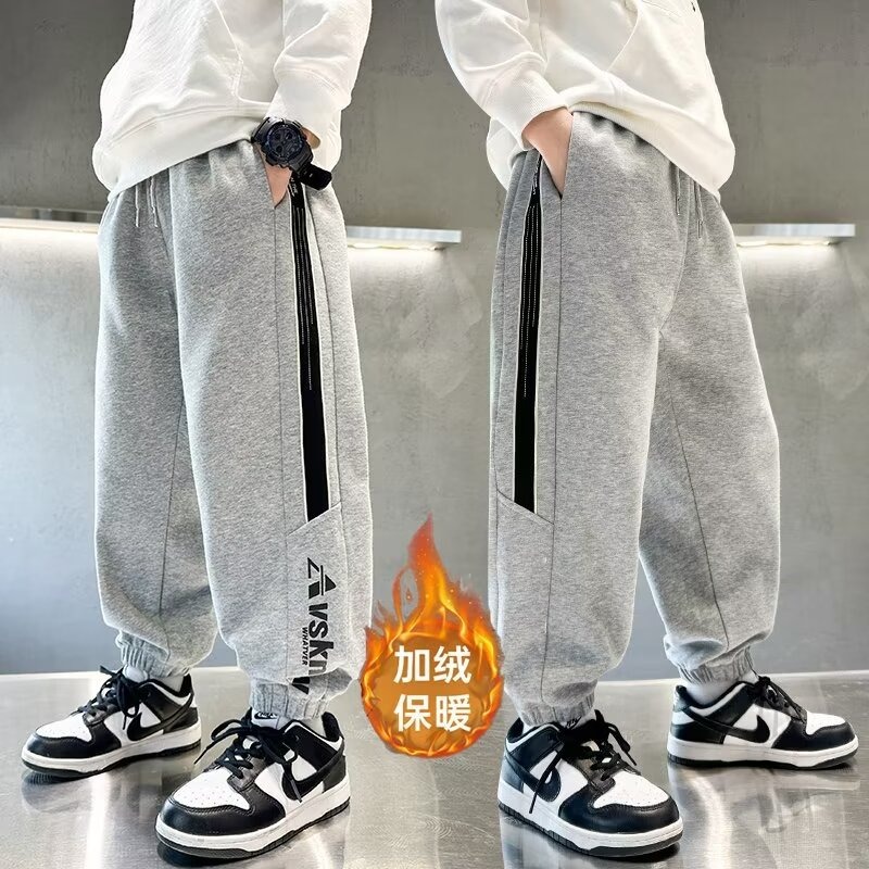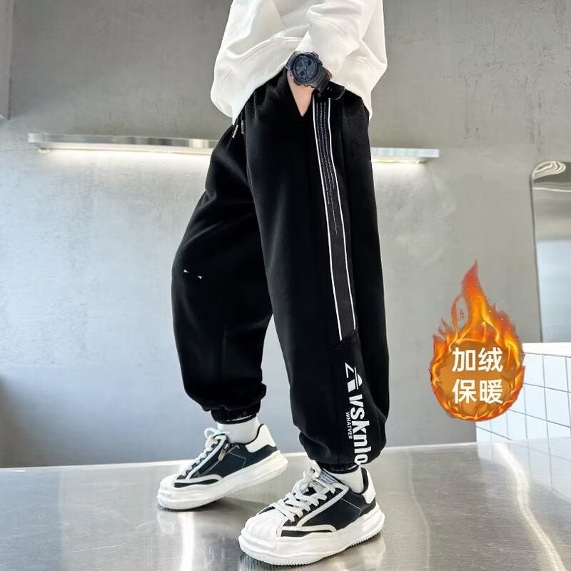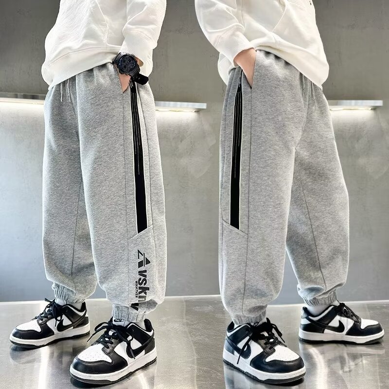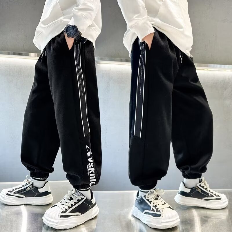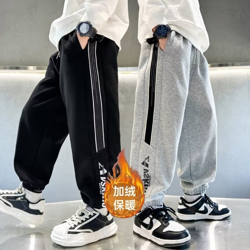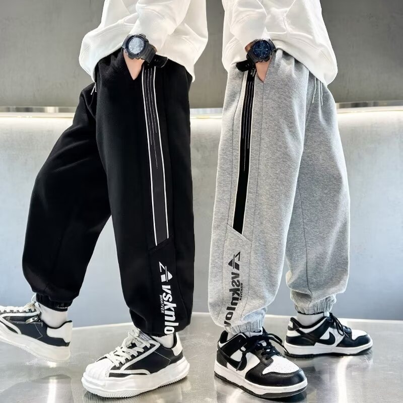 소년 스포츠 바지 2024 새로운 캐주얼 루즈 웨스턴 스타일 어린이 바지 큰 어린이 유행 거리 기모 운동복스토어 가기