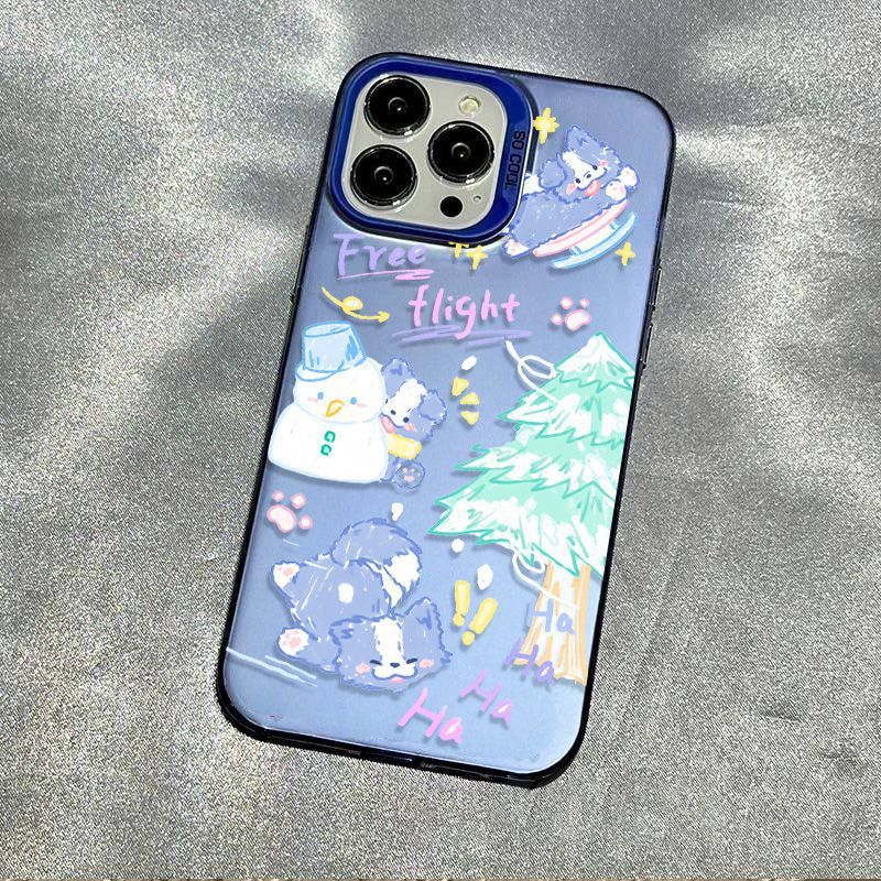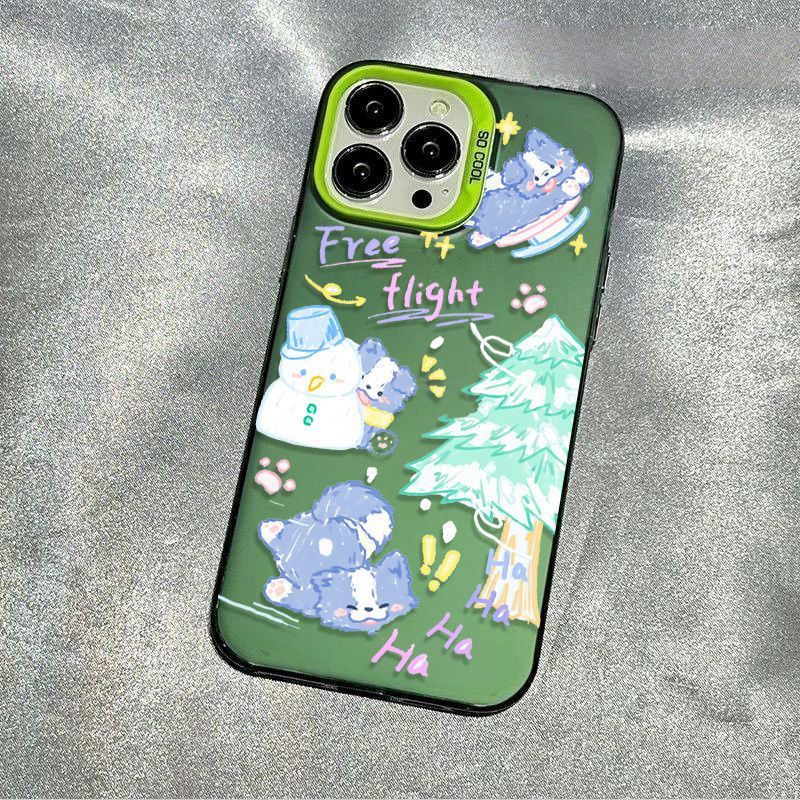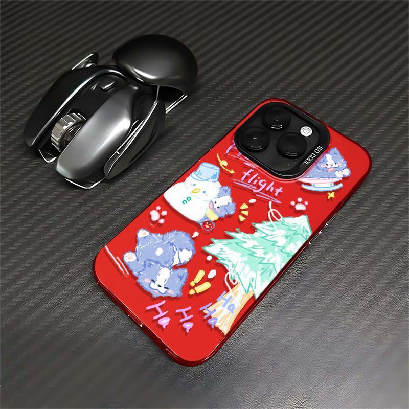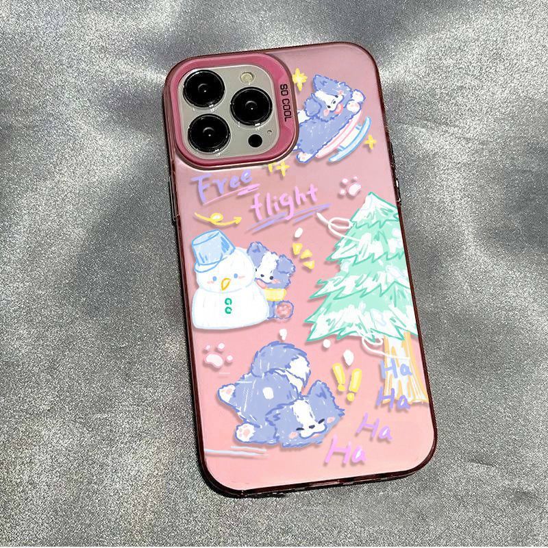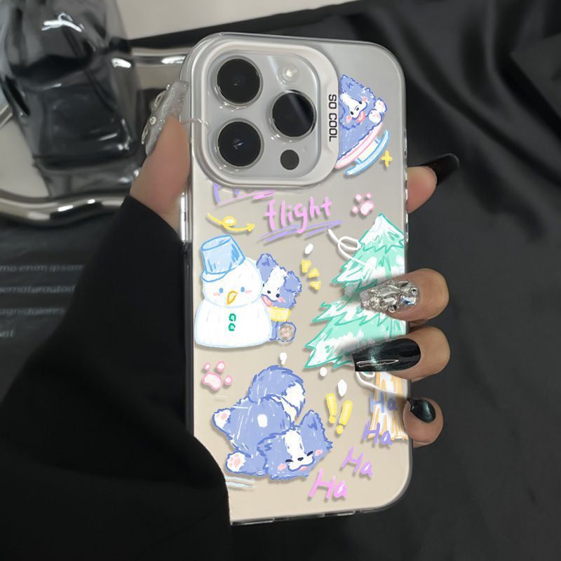 适用苹果16pro圣诞雪人小狗15/14高级感13彩银手机壳防摔硬磨砂x스토어 가기
