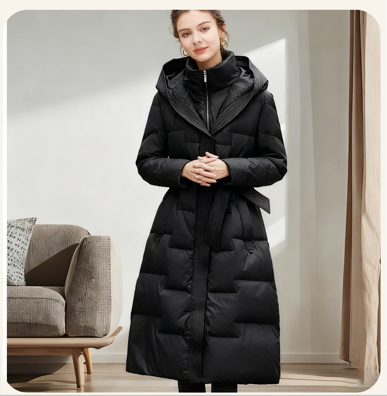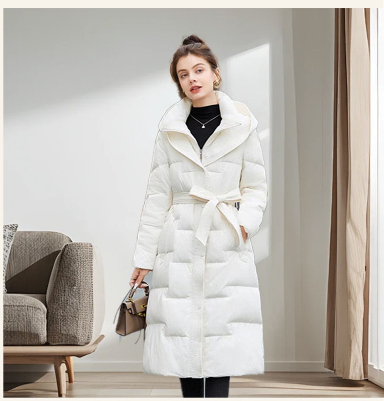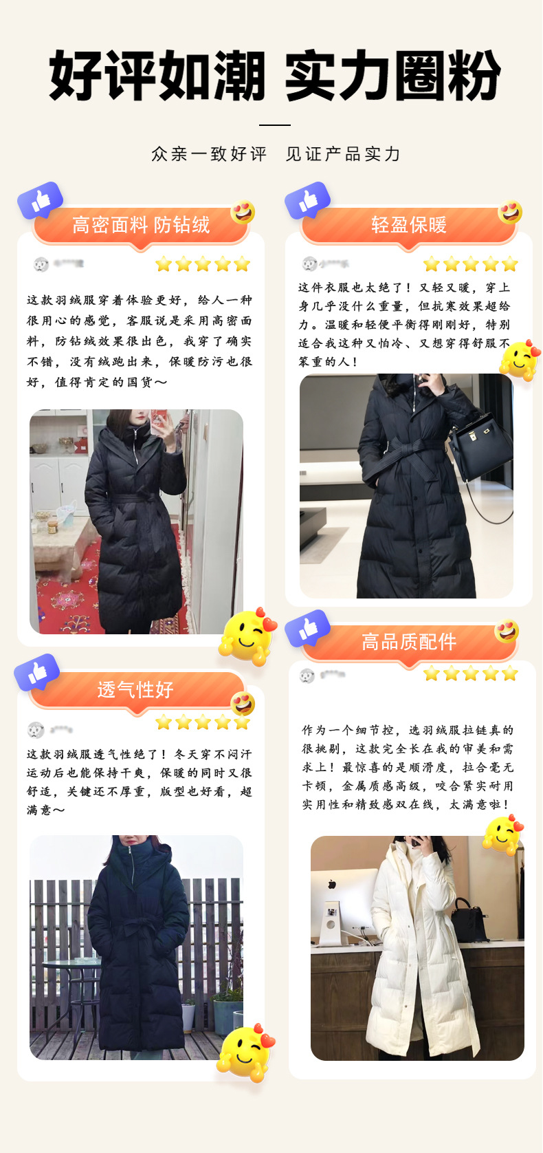 여성용 고급 다운 재킷 겨울 신상 중간 길이 오리털 보온 슬림핏 코트 평후스토어 가기