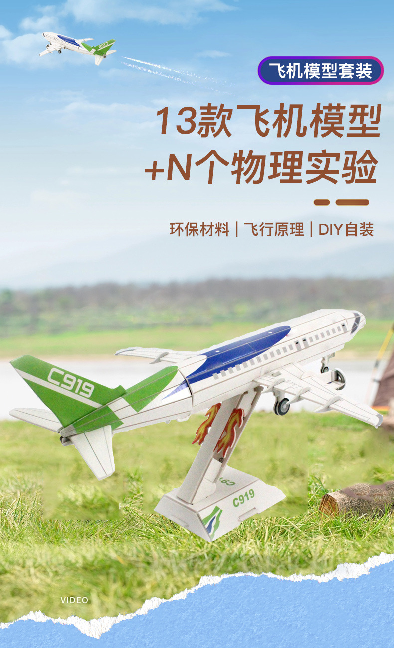 어린이 퍼즐 C919 항공기 모델 DIY 학생 작은 수제 세트 과학 작은 실험 모자이크 장난감스토어 가기