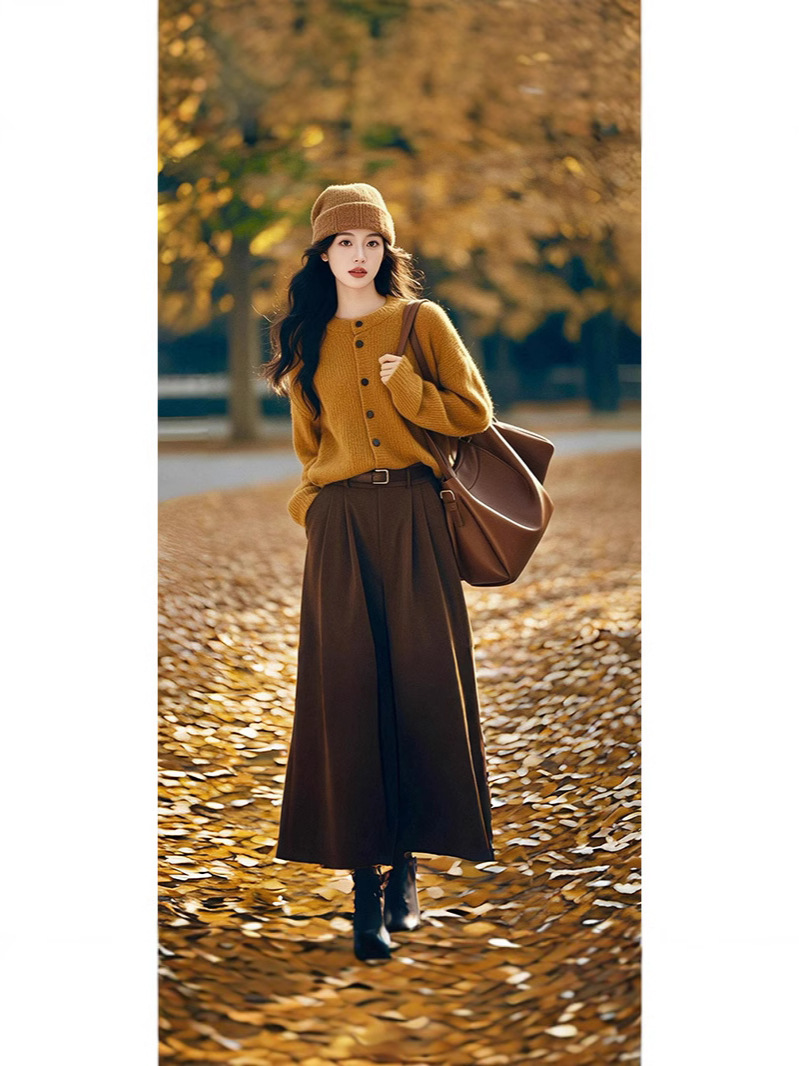 • 노란색 상의 + 브라운 스커트