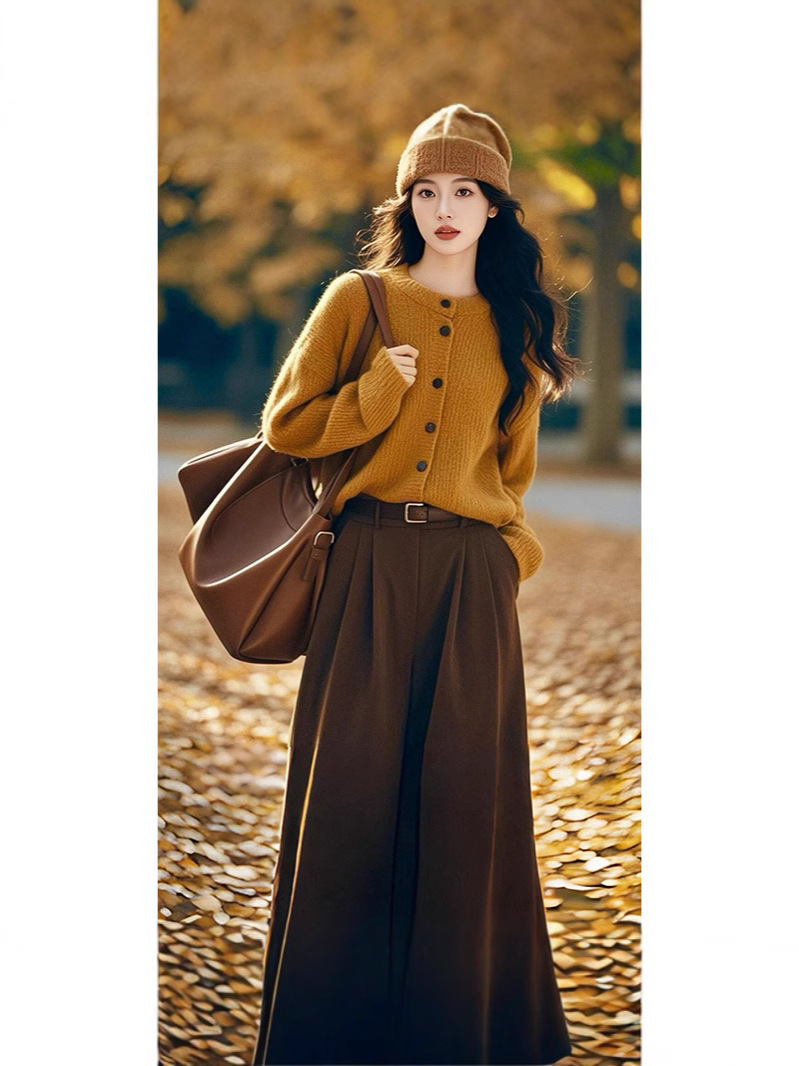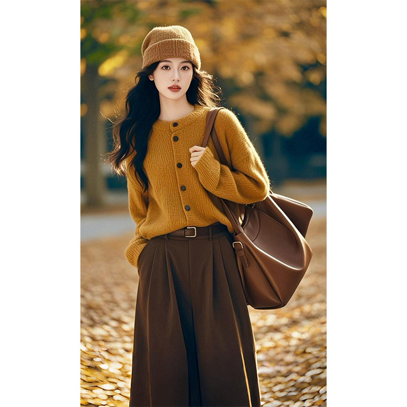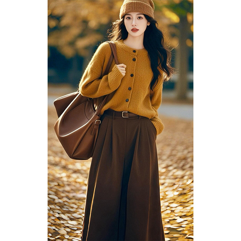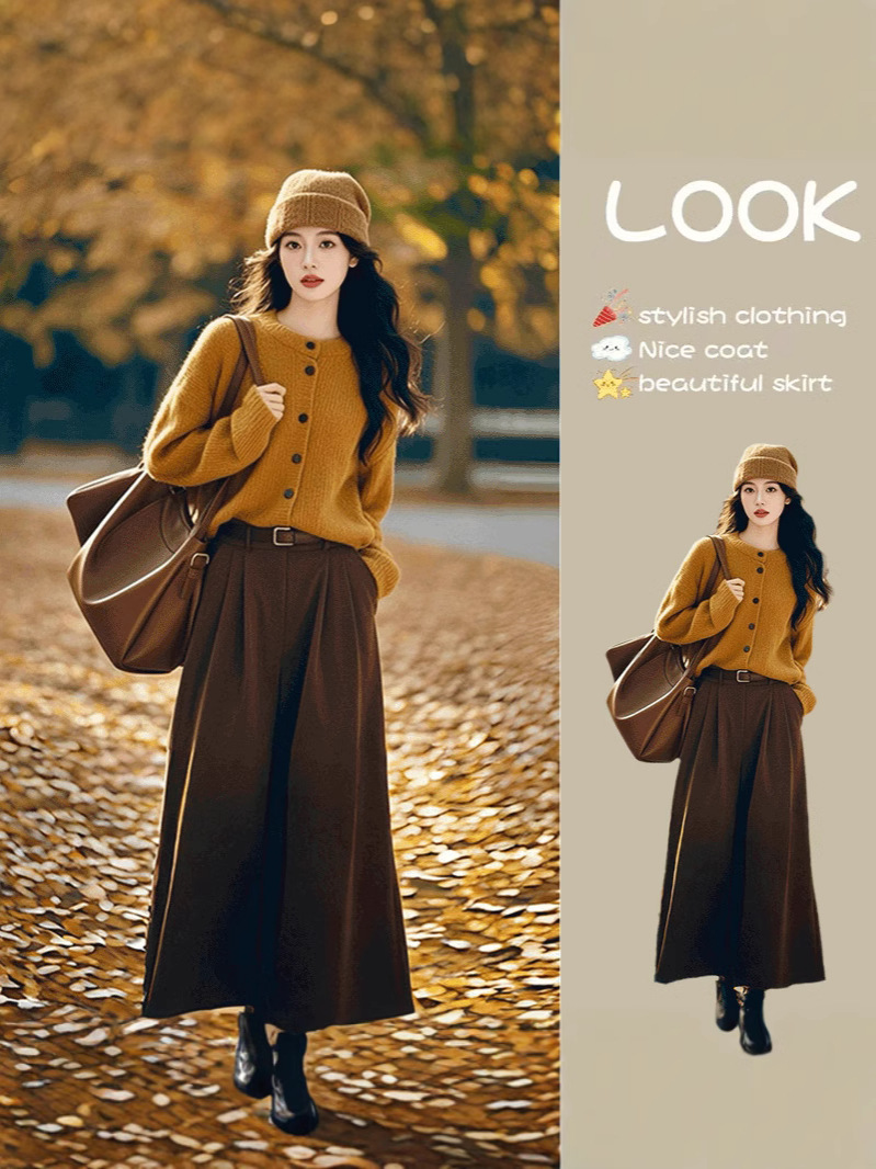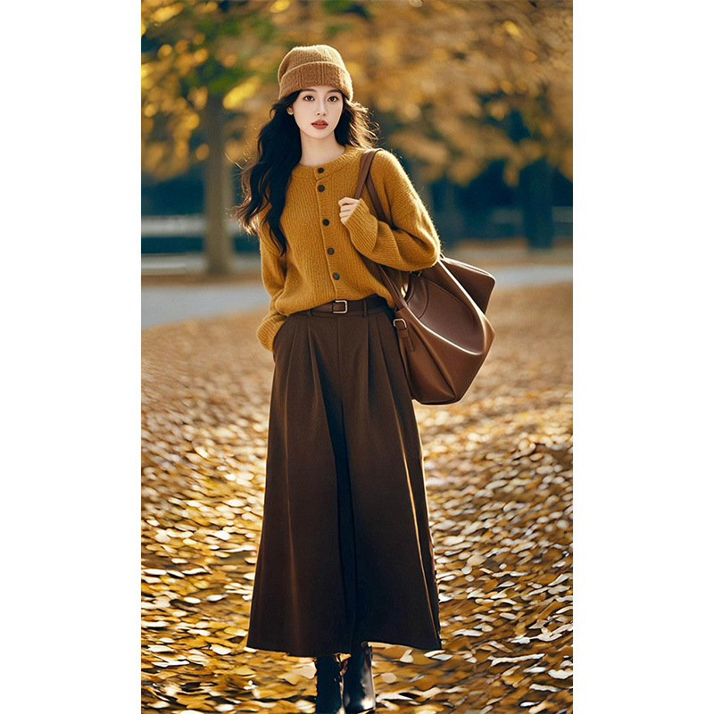 한국 스타일의 패셔너블하고 나른한 스타일의 루즈한 니트 스웨터 2025 가을 겨울 신상 아름다운 하프 스커트 고급 여성 정장스토어 가기