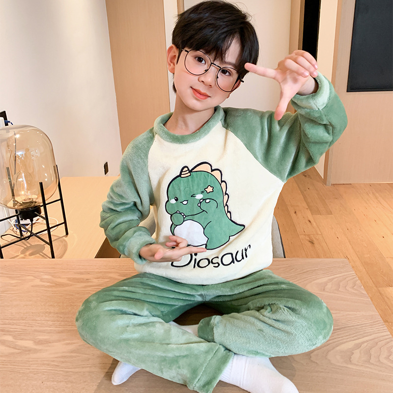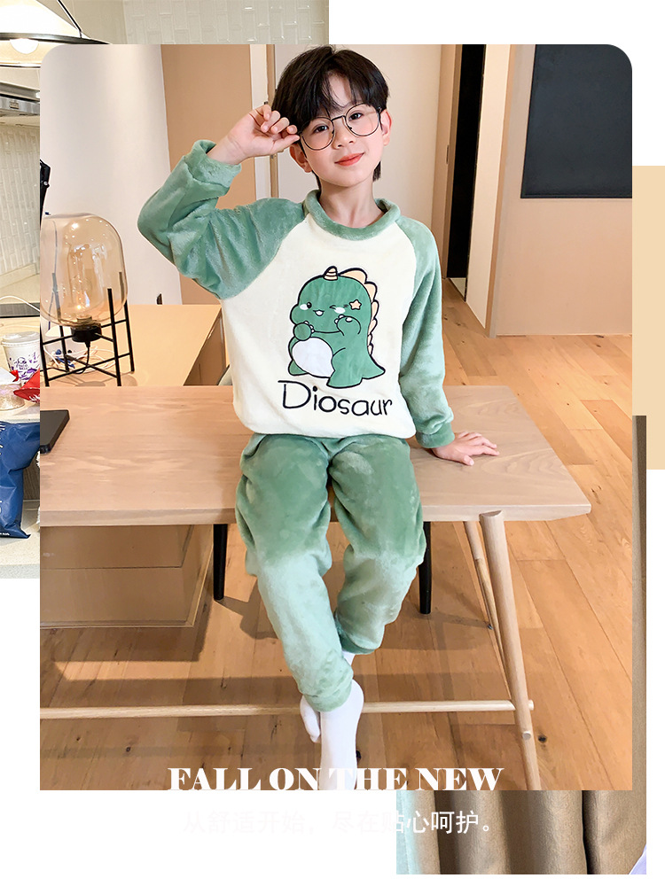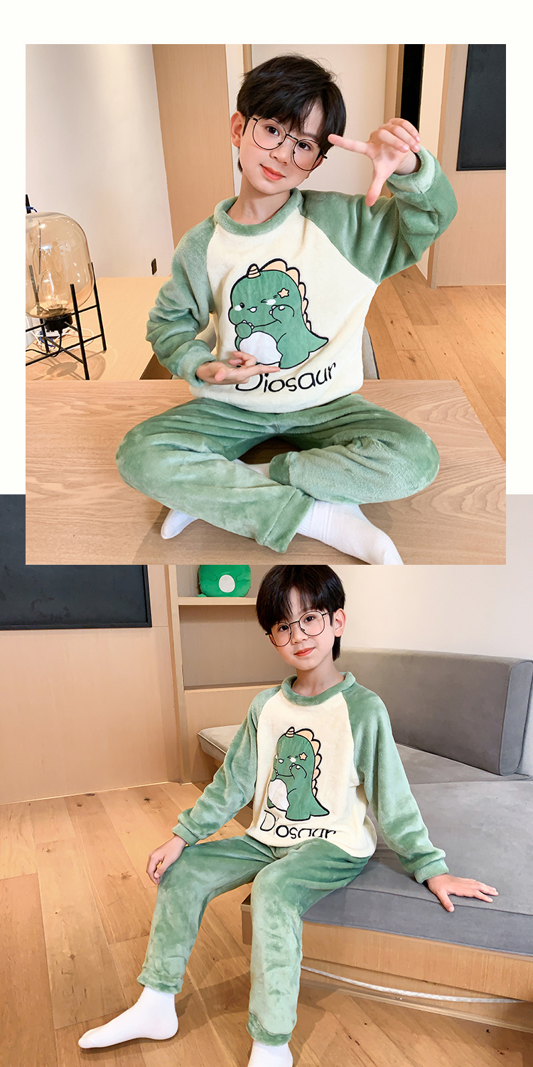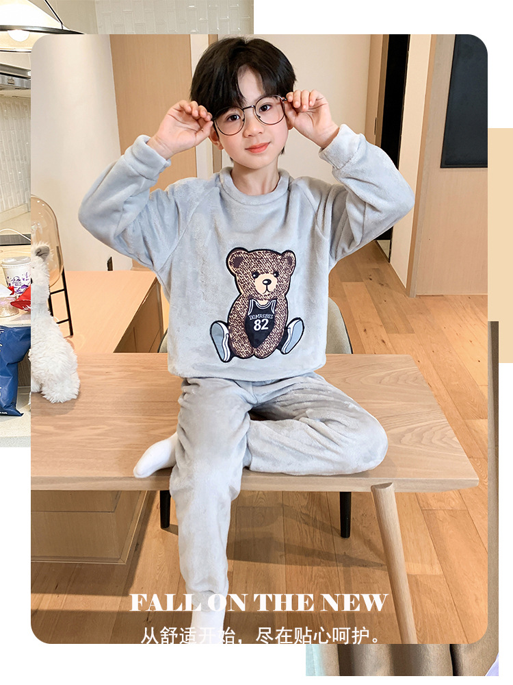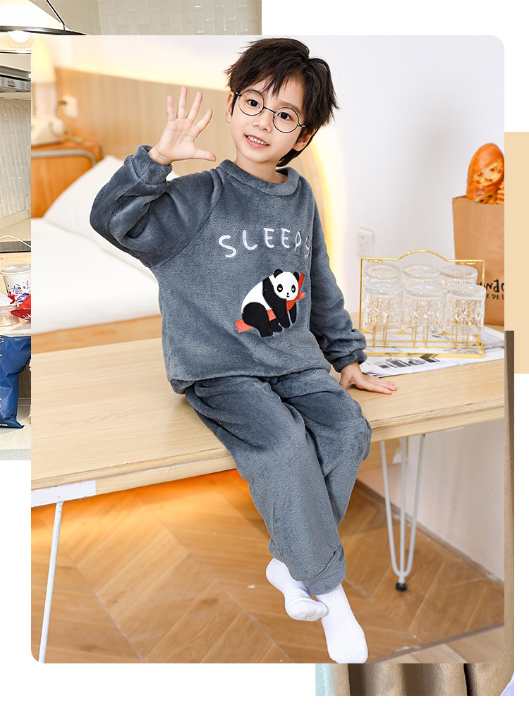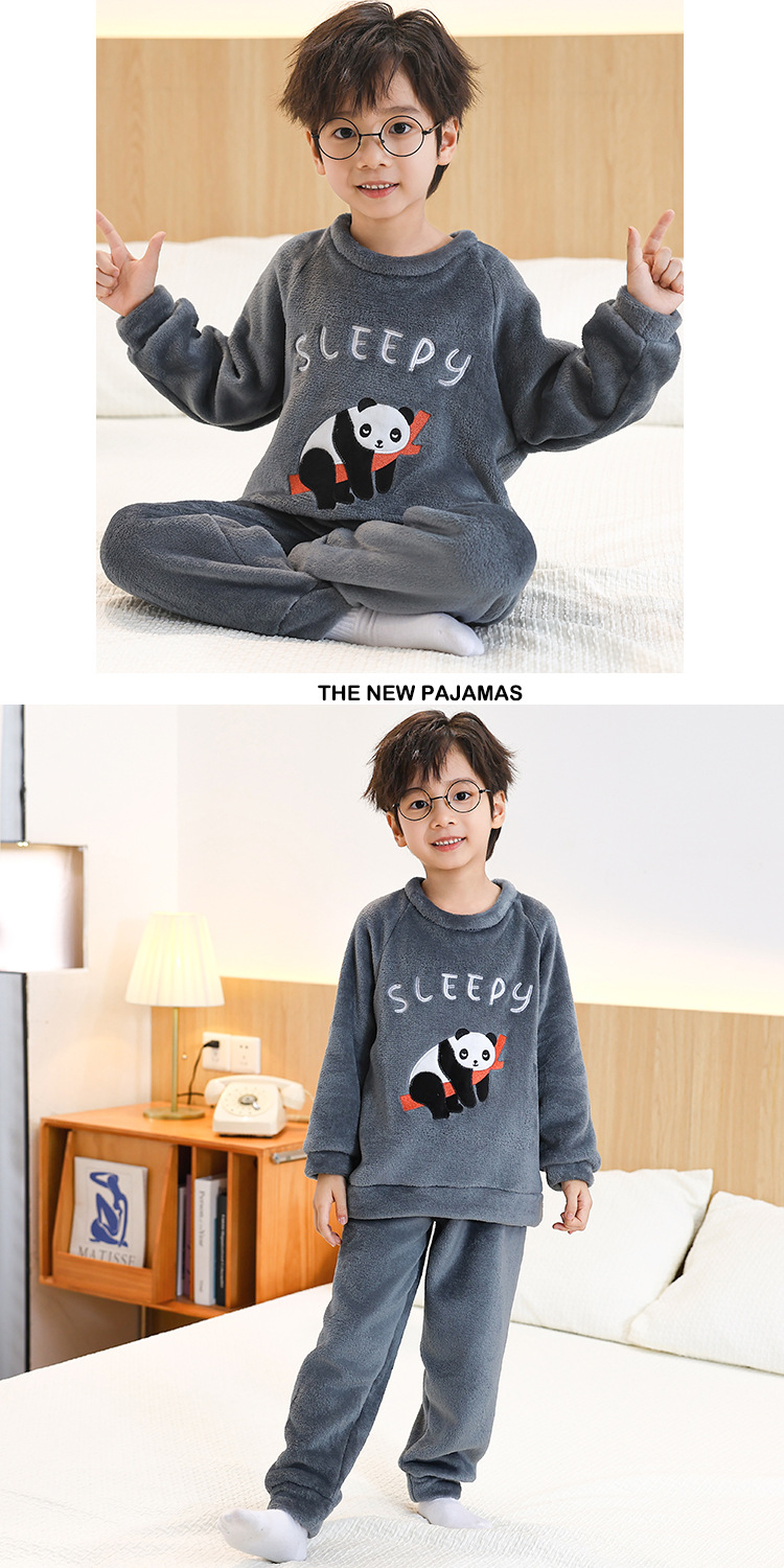 어린이 잠옷 가을 겨울 소년 산호 양털 소년 플란넬 얇은 중형 및 대형 어린이 팬더 따뜻한 집 옷 겨울스토어 가기