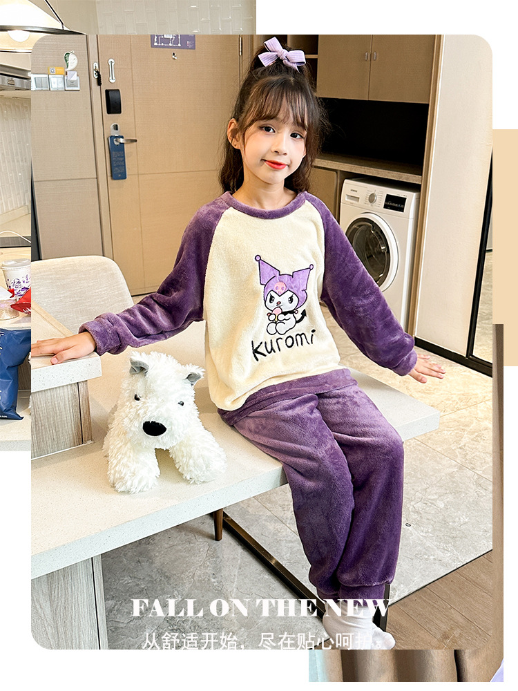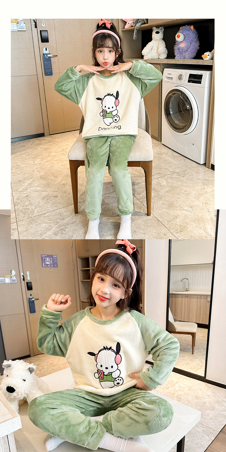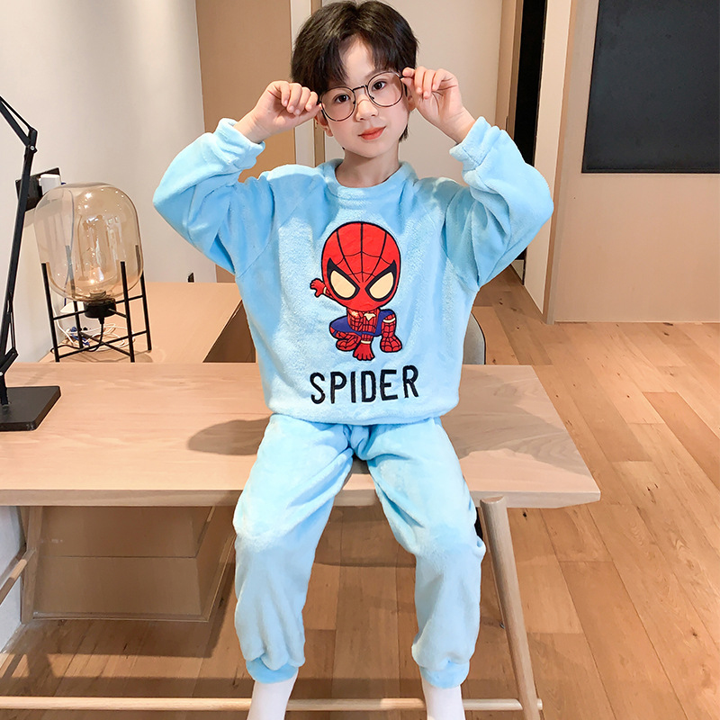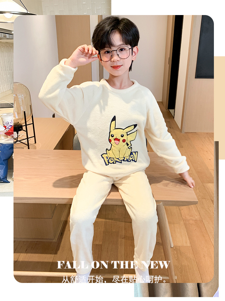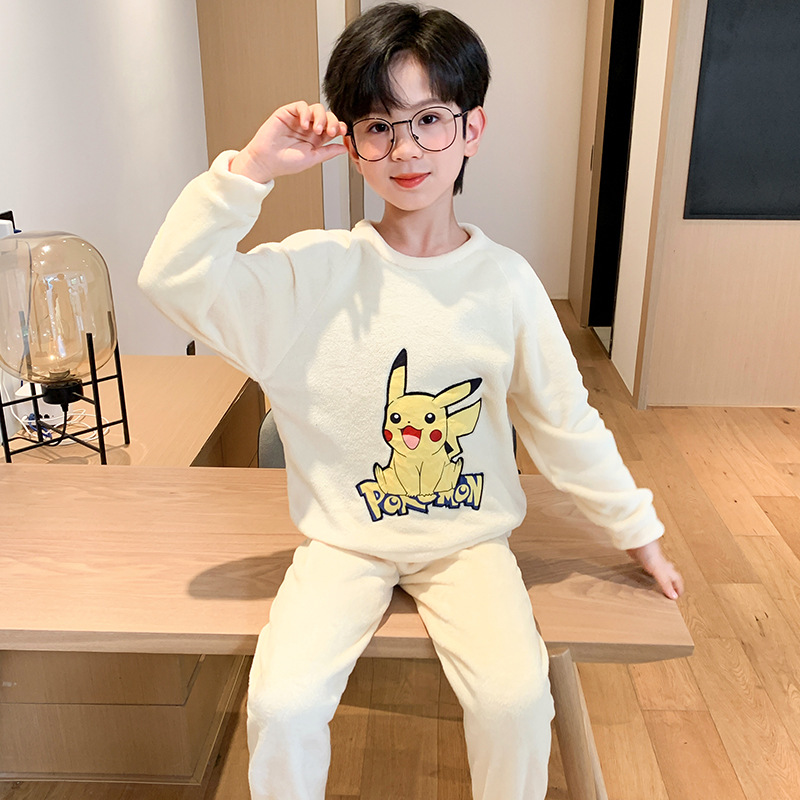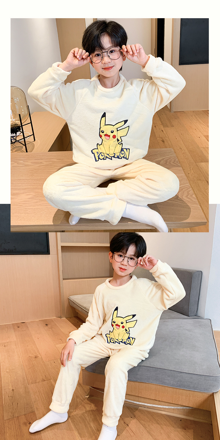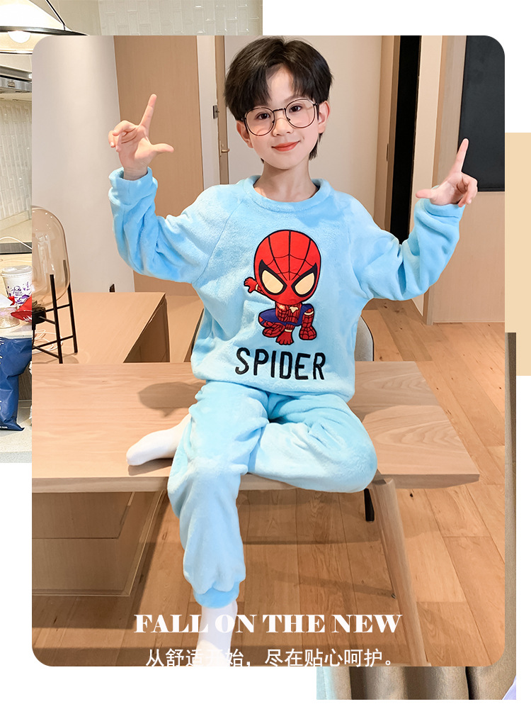 어린이 잠옷 가을 겨울 소년 산호 양털 소년 플란넬 얇은 중형 및 대형 어린이 팬더 따뜻한 집 옷 겨울스토어 가기