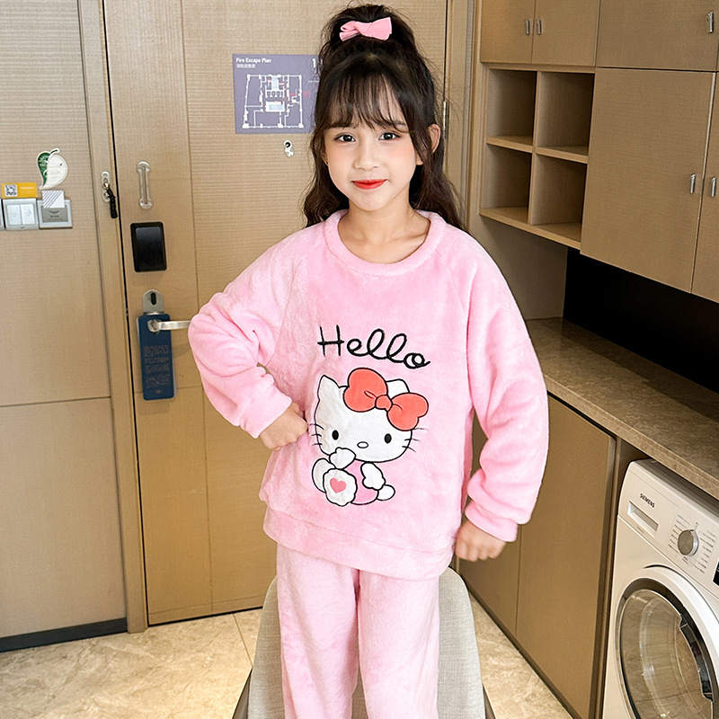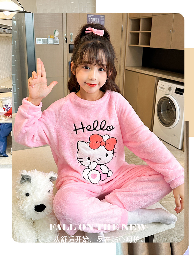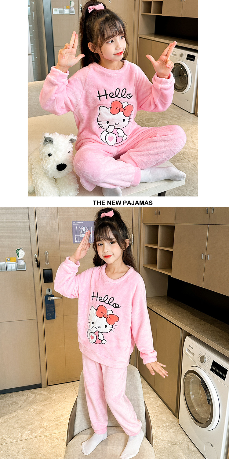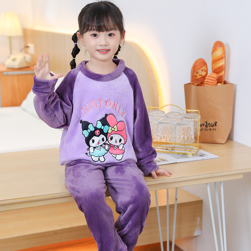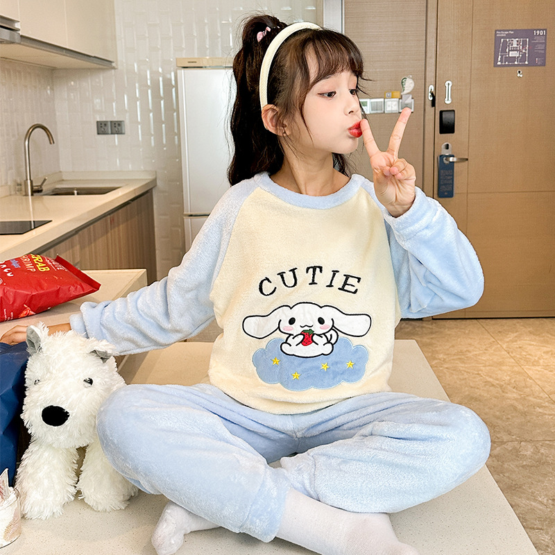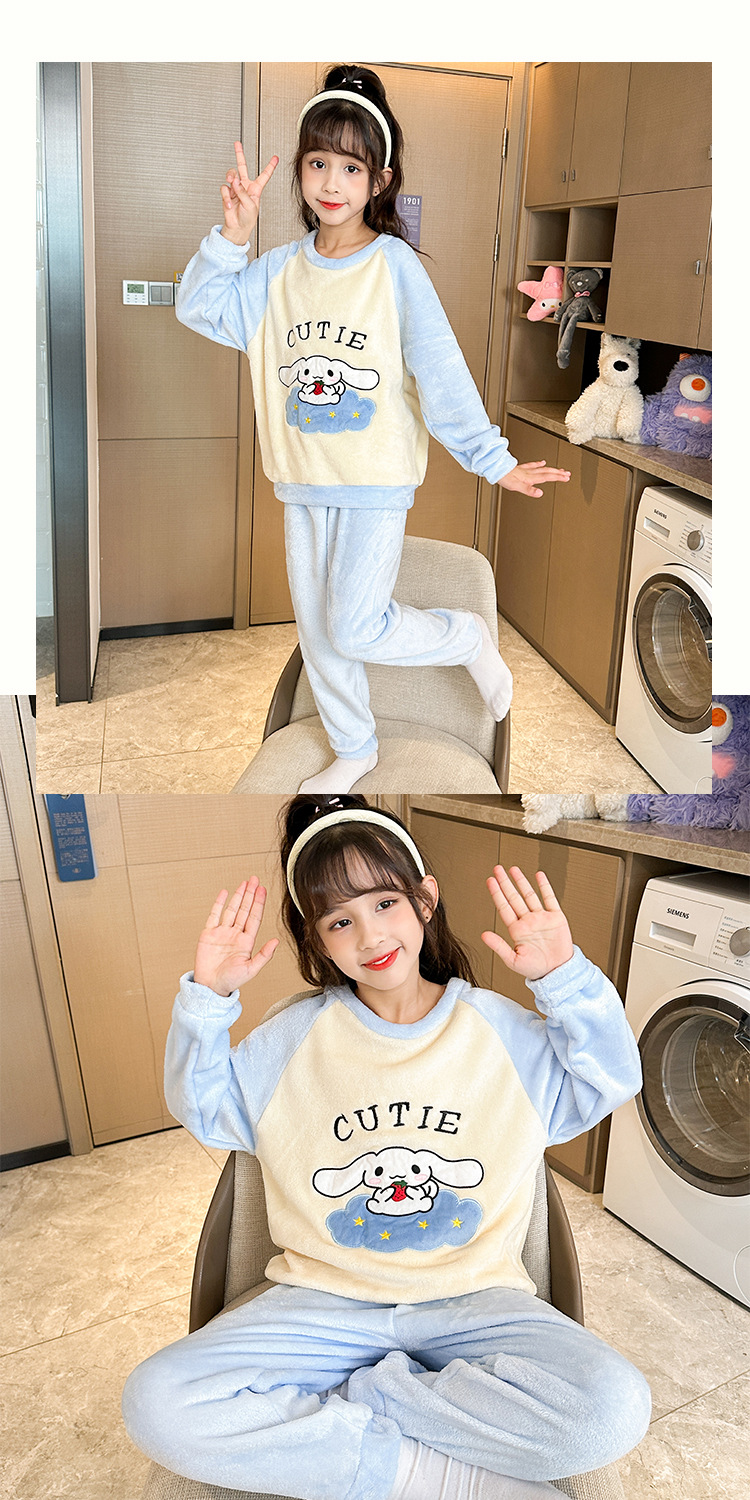 어린이 잠옷 가을 겨울 소년 산호 양털 소년 플란넬 얇은 중형 및 대형 어린이 팬더 따뜻한 집 옷 겨울스토어 가기